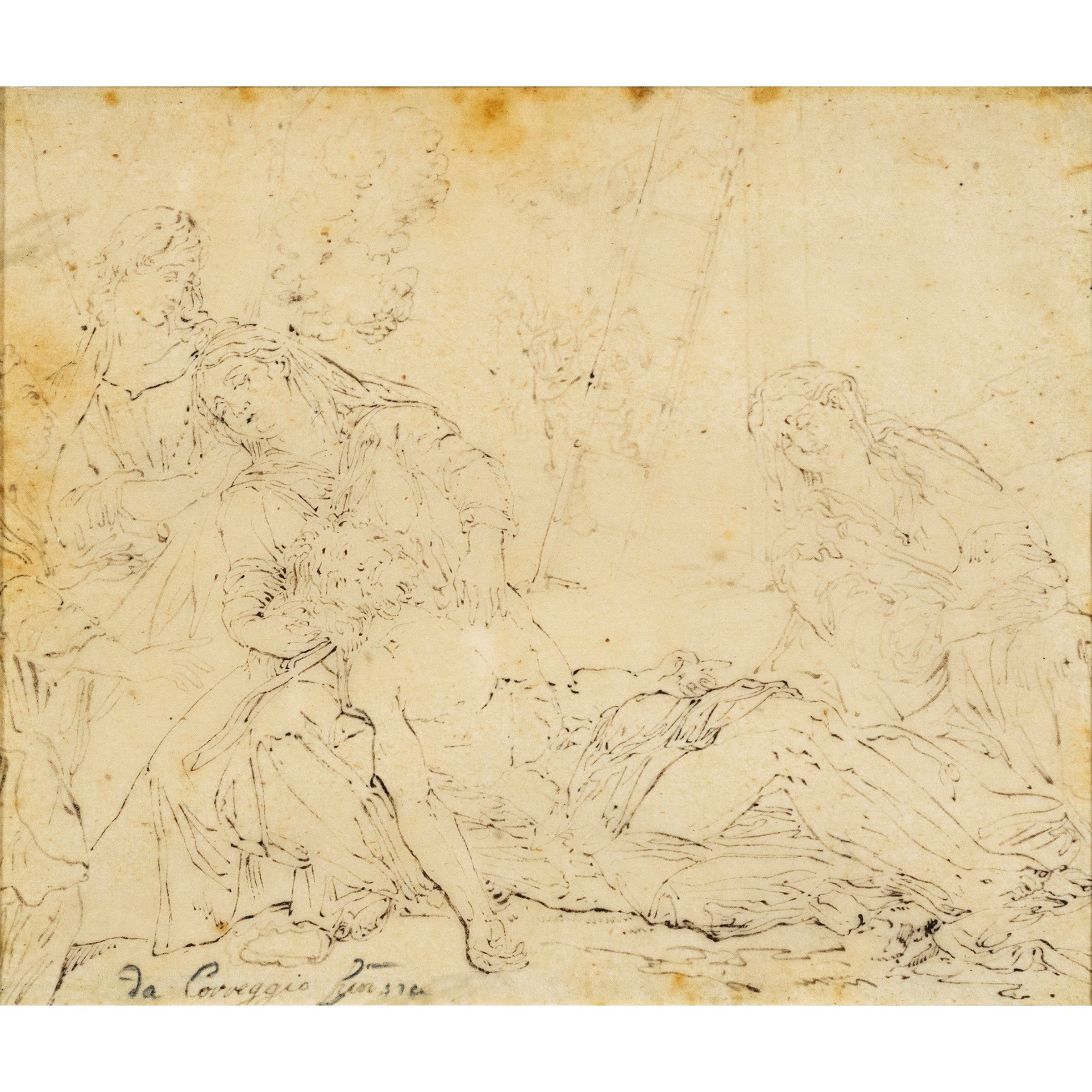 XIX Sec. Compianto su Cristo morto, da Coreggio, inchiostro su carta