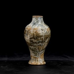Vaso in porcellana Guan con tocchi di coloro verdi e gialli, Cina, XX secolo