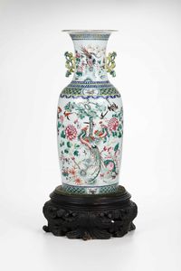 Vaso in porcellana con anse sagomate e figure di fenici tra peonie in fiore, Cina, [..]