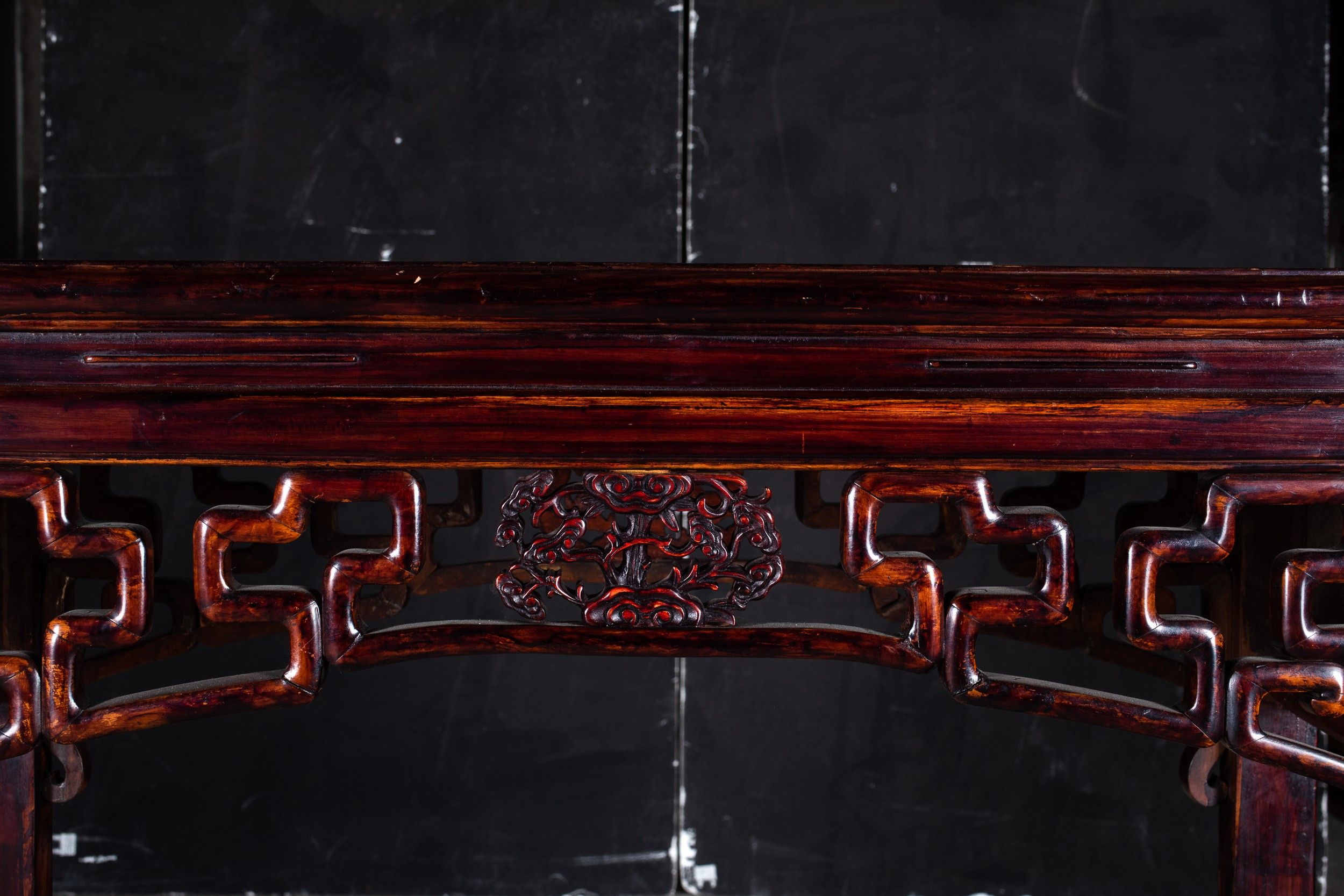 Consolle con sedia in legno con decori naturalistici, Cina, XX secolo
