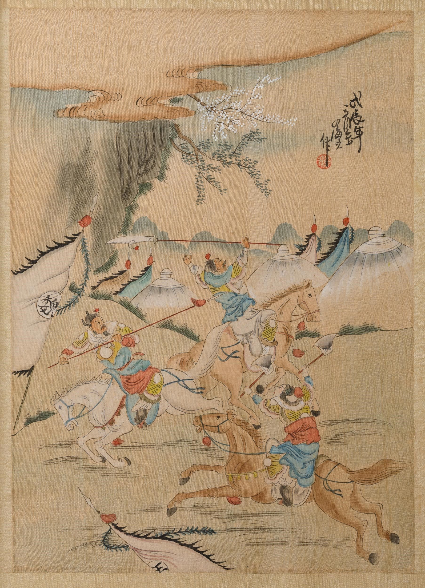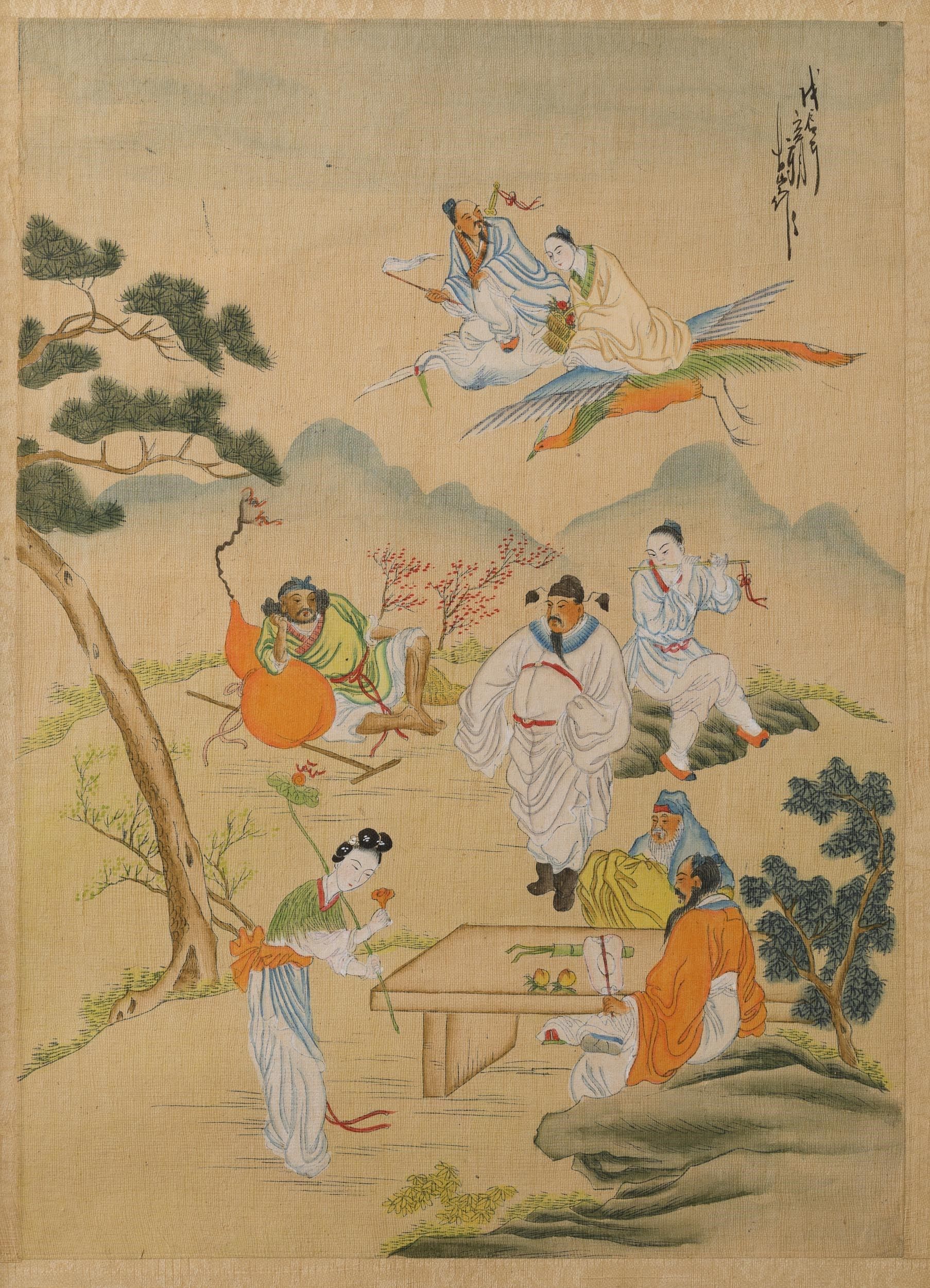 Sette dipinti su carta raffiguranti soggetti diversi, Cina, XX secolo