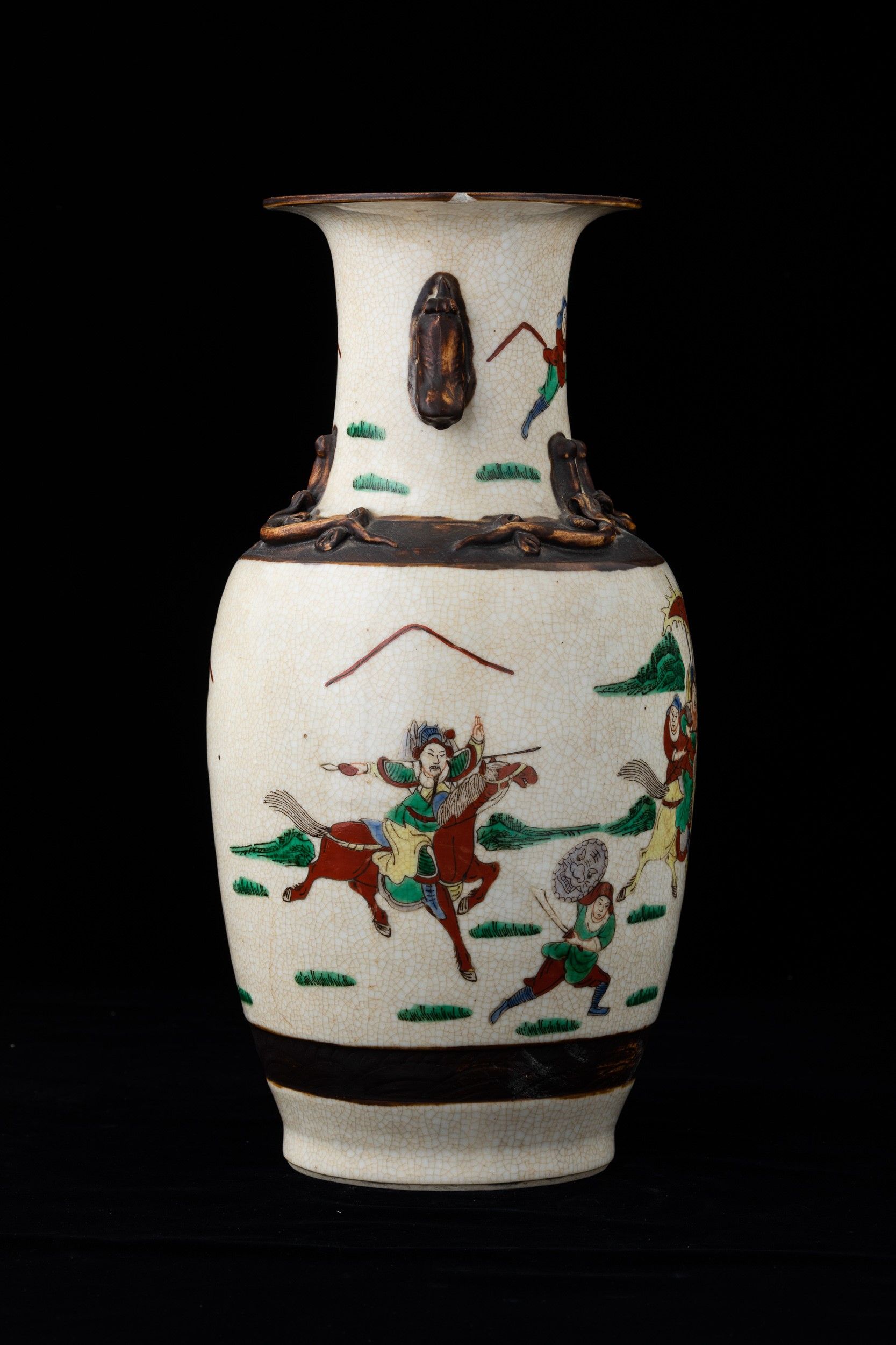 Vaso in porcellana con guerrieri e figure di draghetti a rilievo, Cina, Dinastia [..]