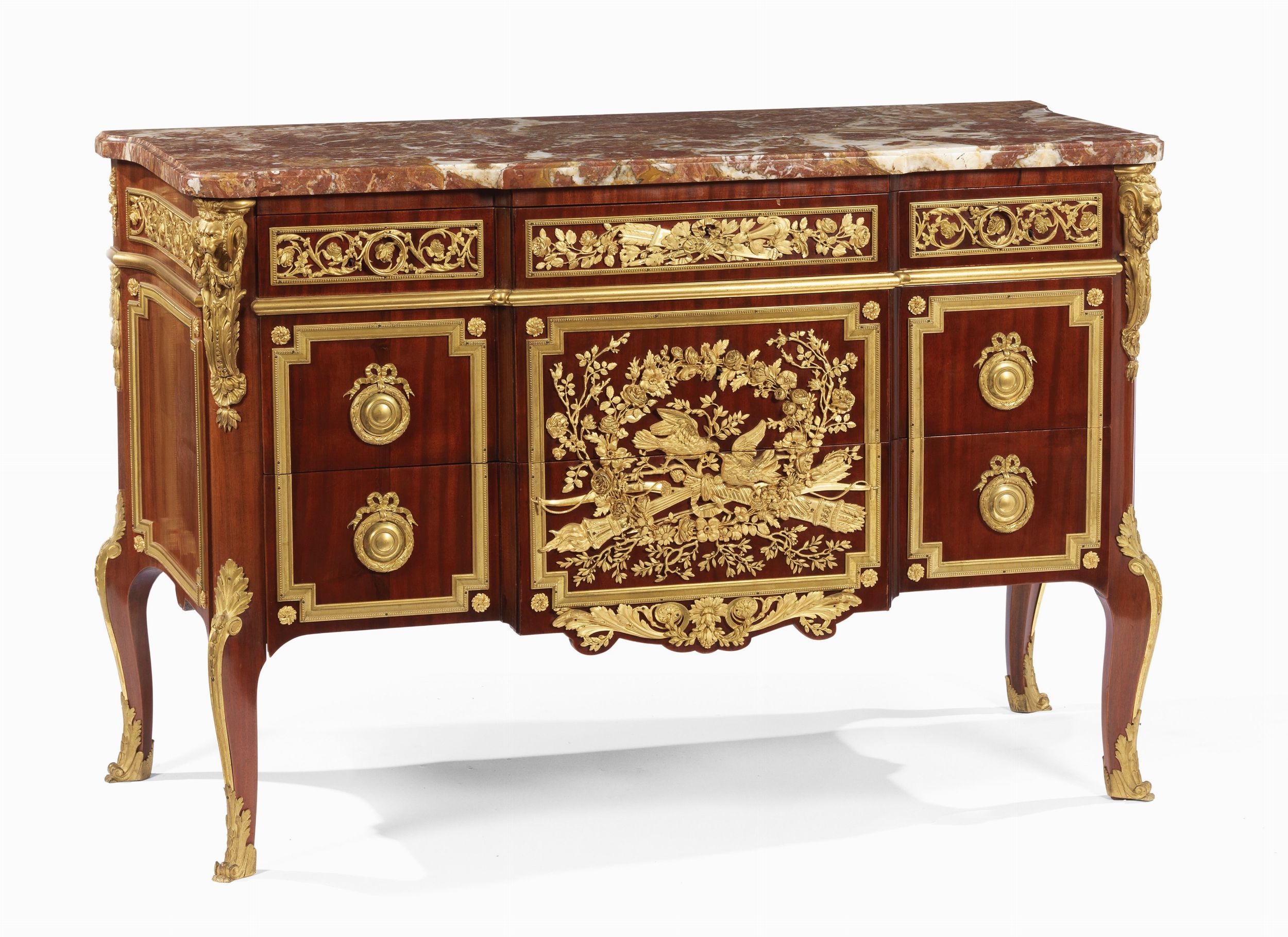 Commode in legno di mogano con rilievi in bronzo dorato