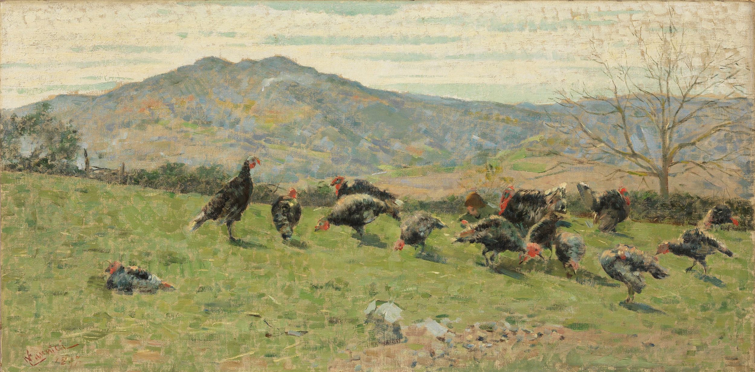 Olio su tela, cm. 34,5x70 1897 Firma e data in basso a sinistra: N Cannicci / 1897; scritta al verso sul telaio: Campagna volterrana: firma Tassi Renato; sulla tela: cartiglio e firma Renato Tassi, con dati dell'opera: timbro Galleria d'Arte La Stanzina dei F.lli Tassi.