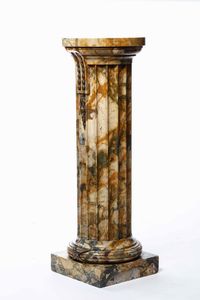Colonna scanalata in marmo giallo con inserti in bronzo dorato. XIX-XX secolo