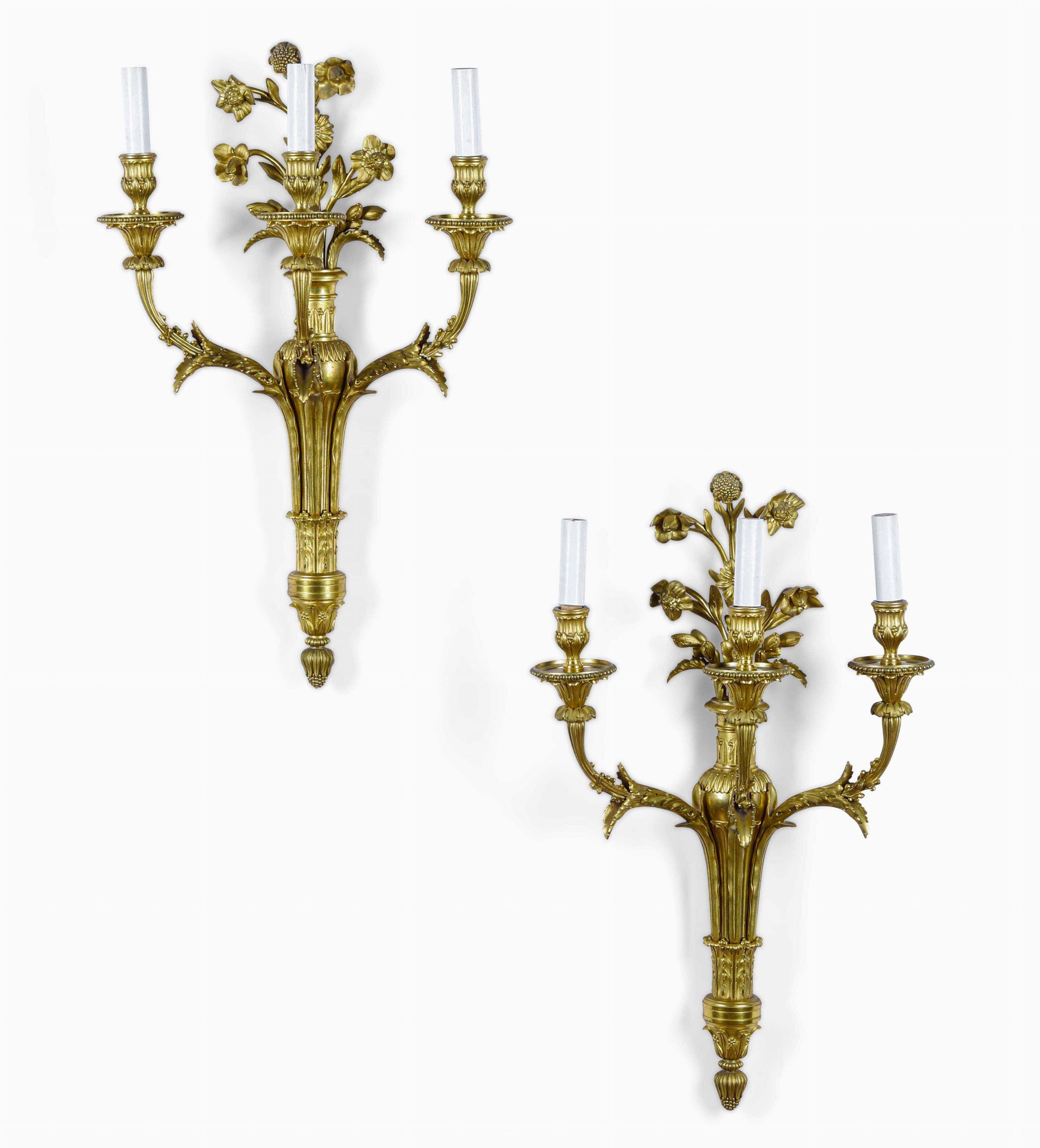 Coppia di appliques a tre luci in bronzo dorato. Francia XVIII-XIX secolo