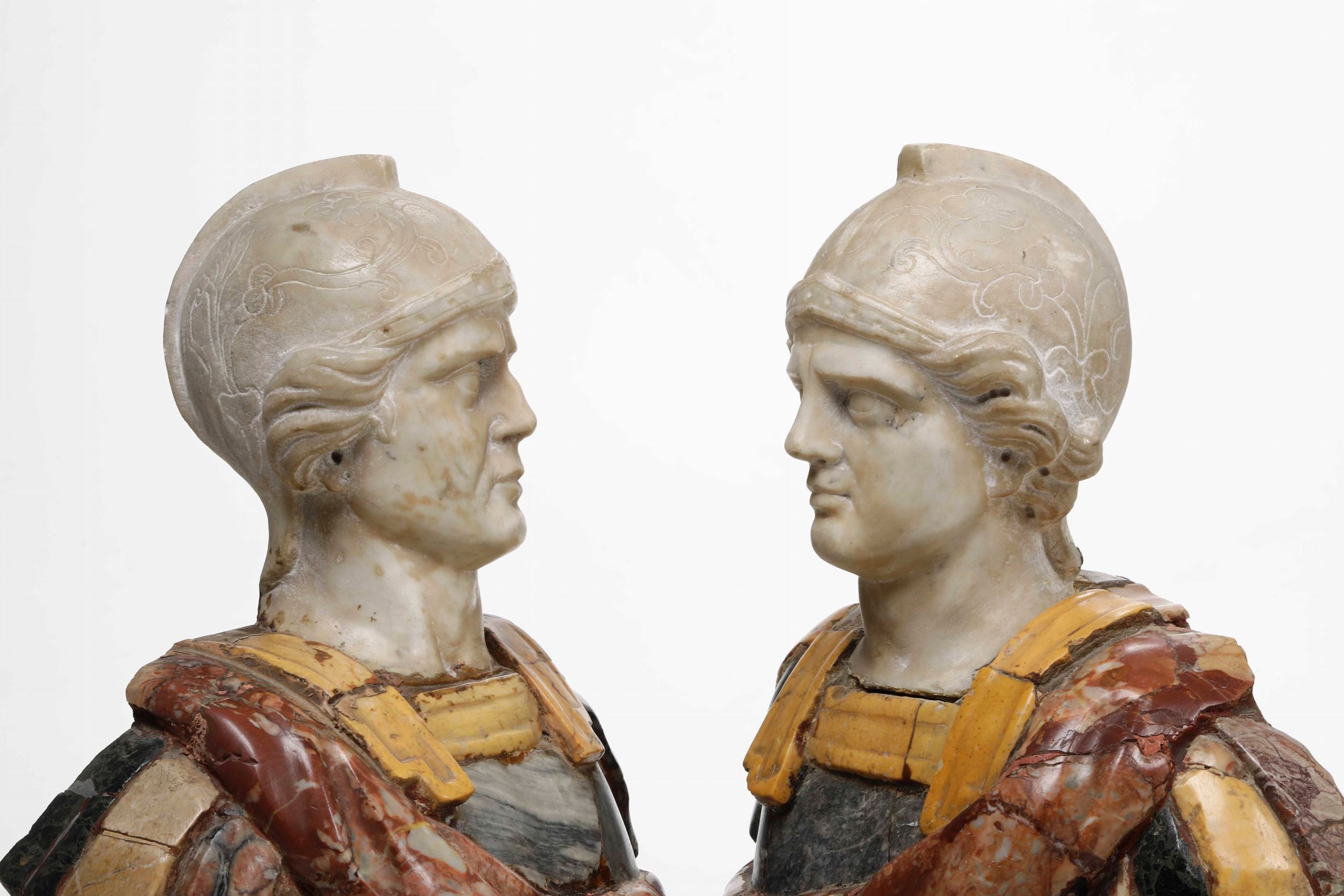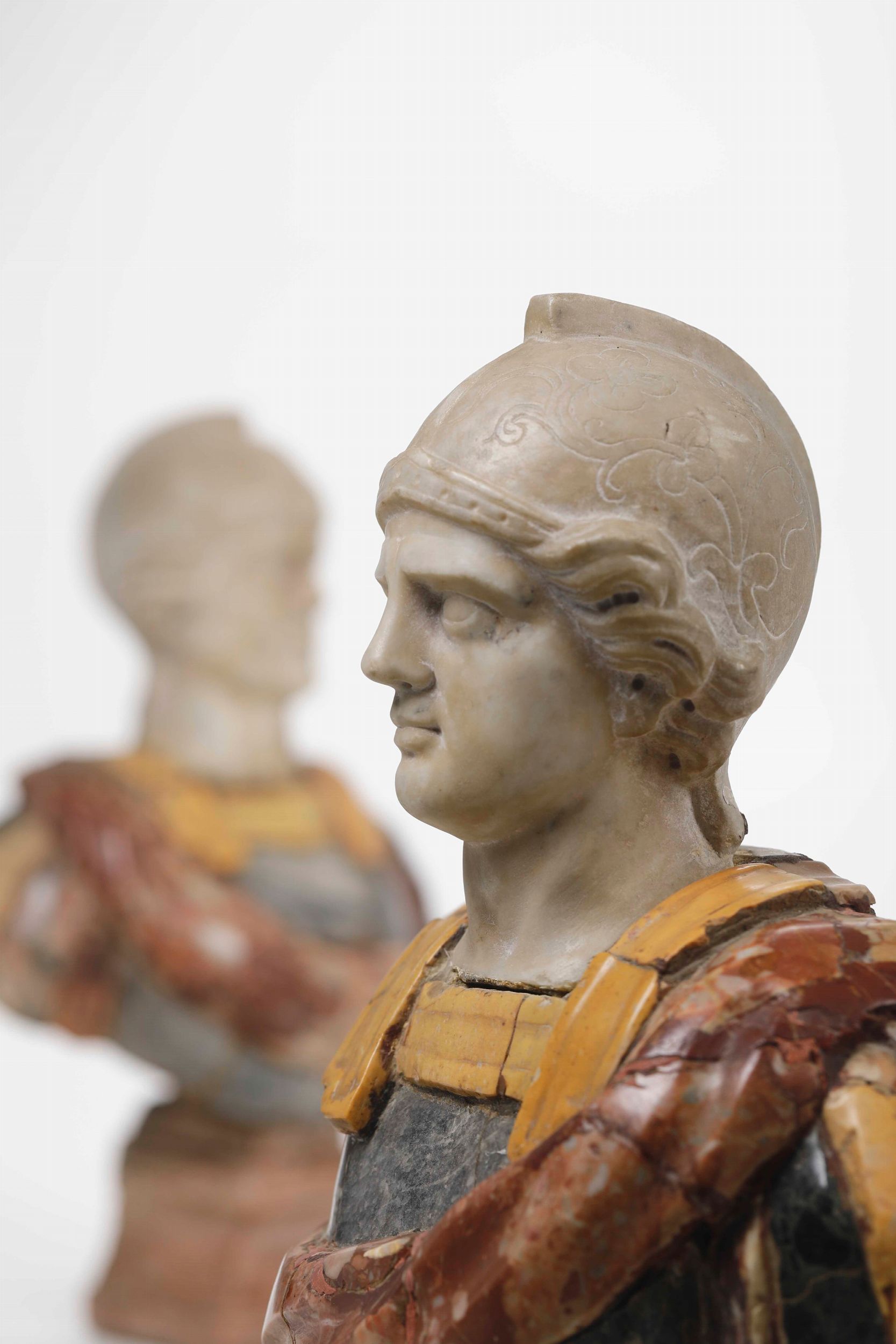 Coppia di busti loricati. Marmo bianco, peperino e marmi colorati. Probabile XVIII [..]