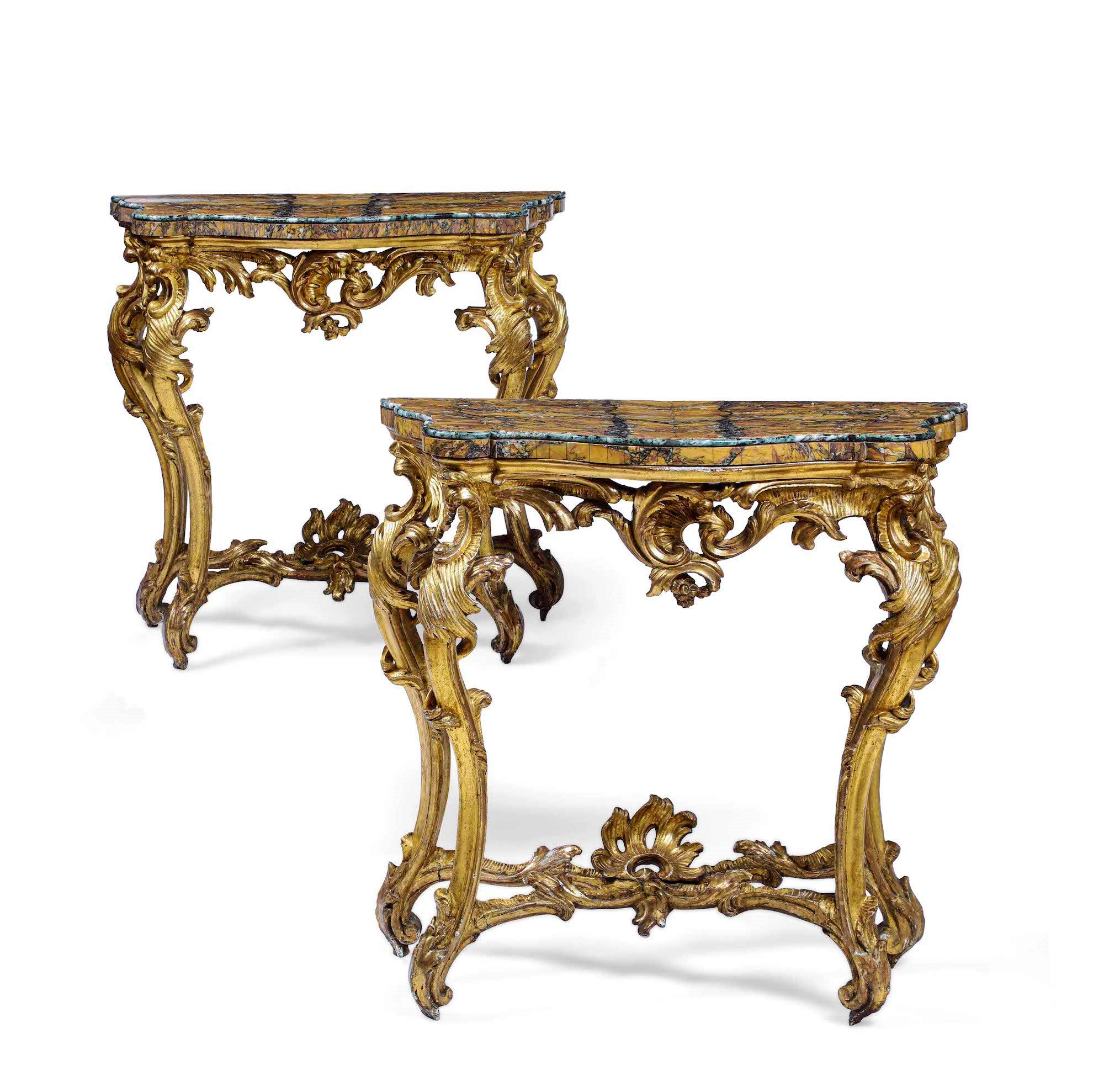 Coppia di consolles in legno intagliato e dorato. Roma XVIII secolo