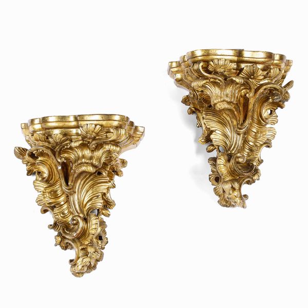 Coppia di mensole in legno intagliato e dorato. XIX-XX secolo
