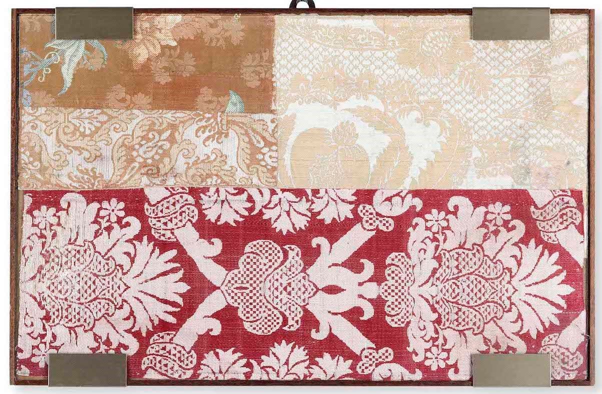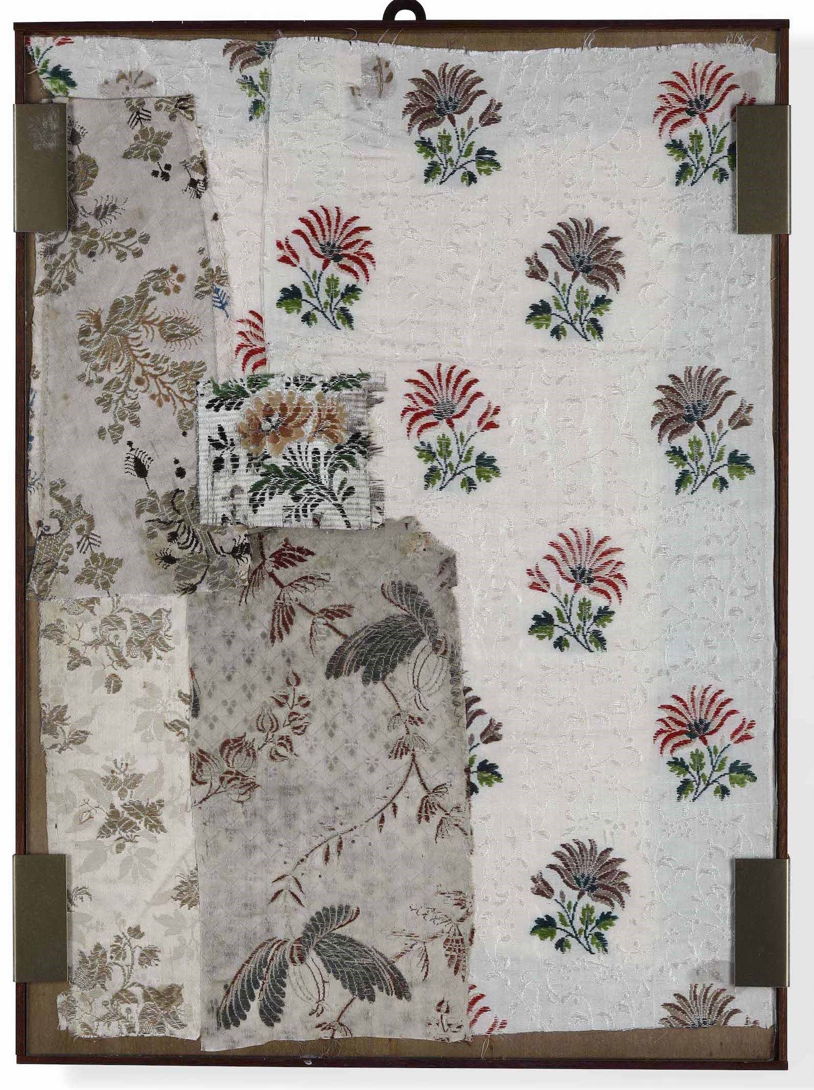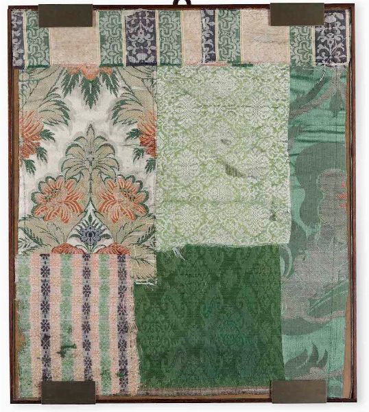 Lotti di sei tessuti in cornice