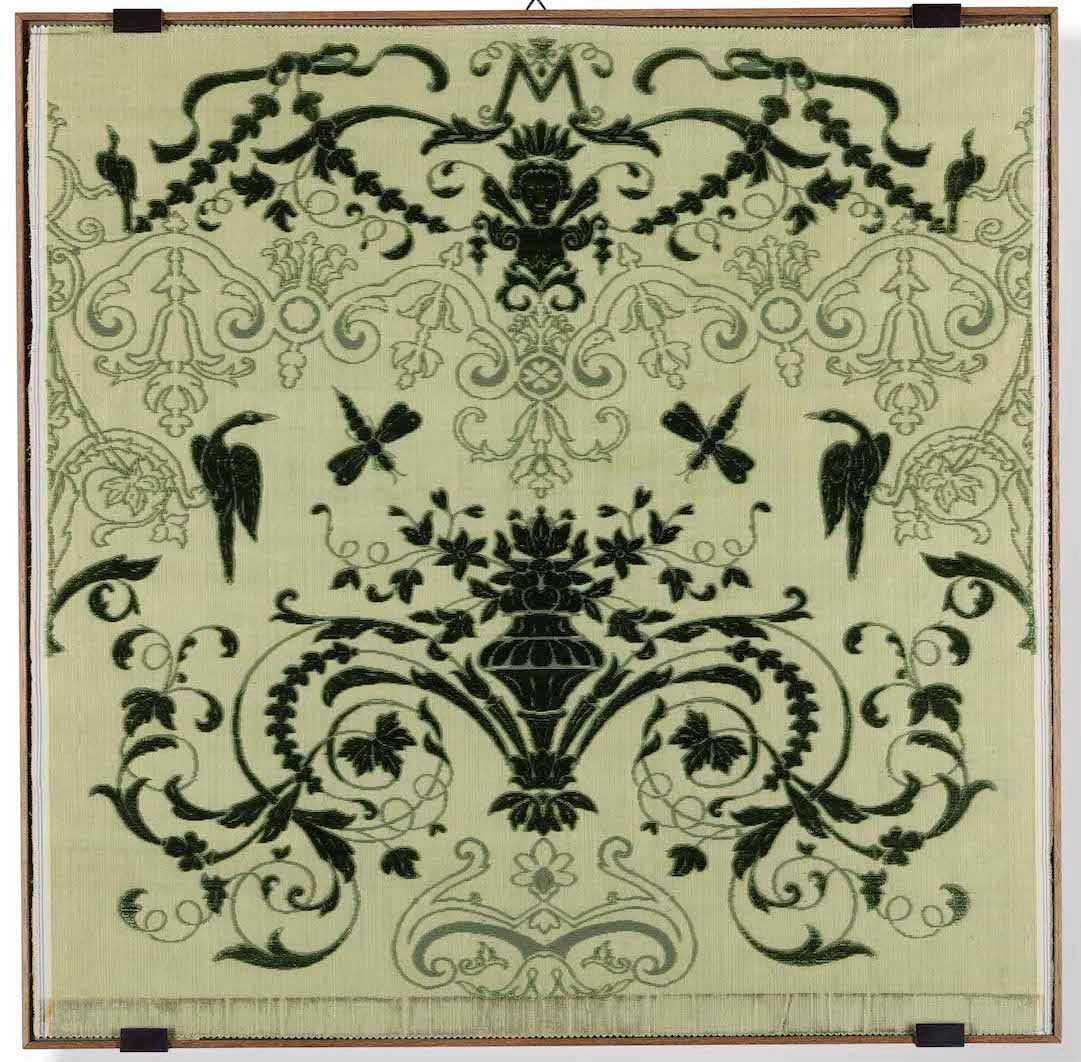 Lotto di cinque tessuti in cornice