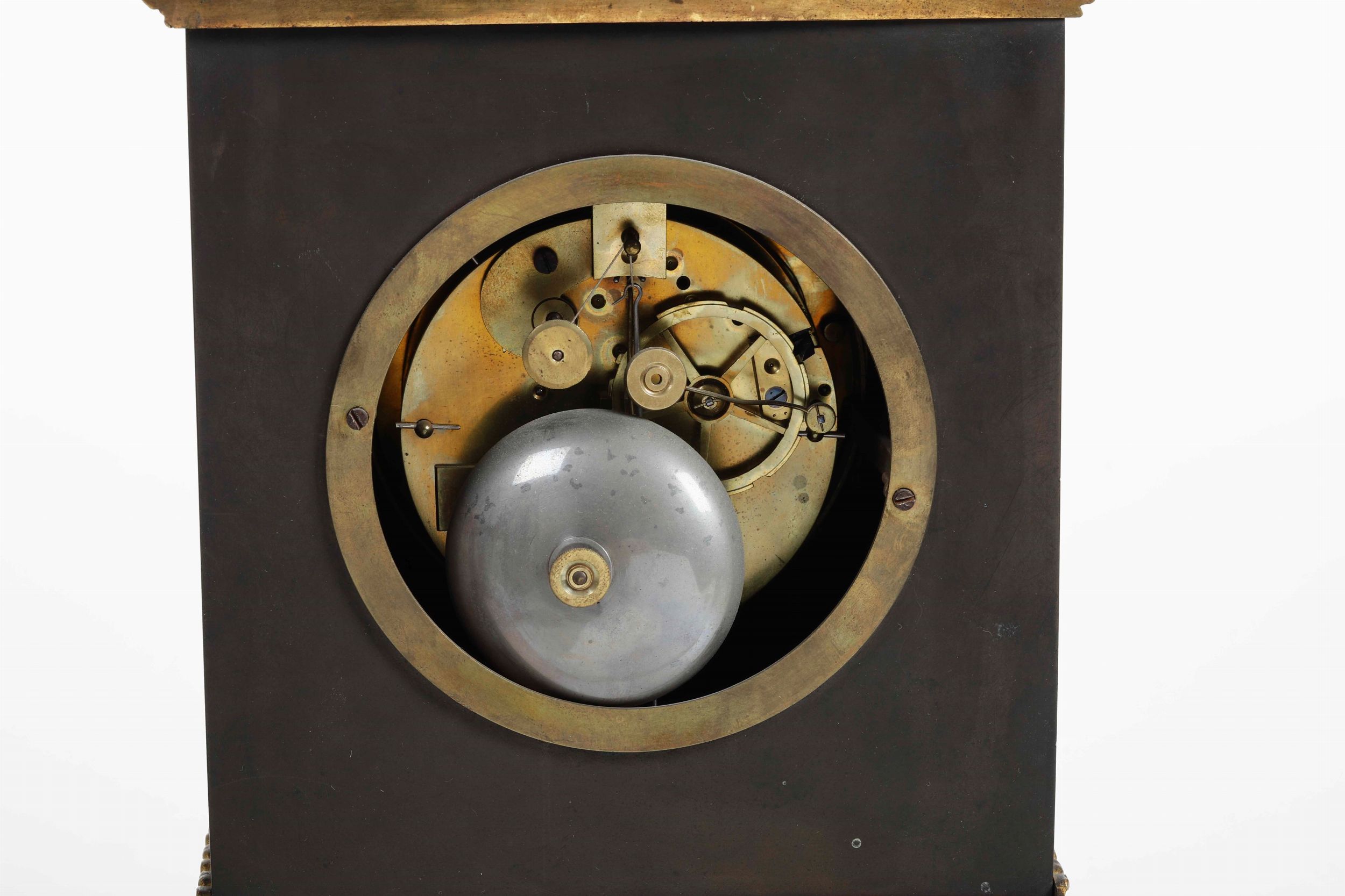 Pendola da tavolo in bronzo patinato e bronzo dorato e cesellato. Francia XIX se [..]
