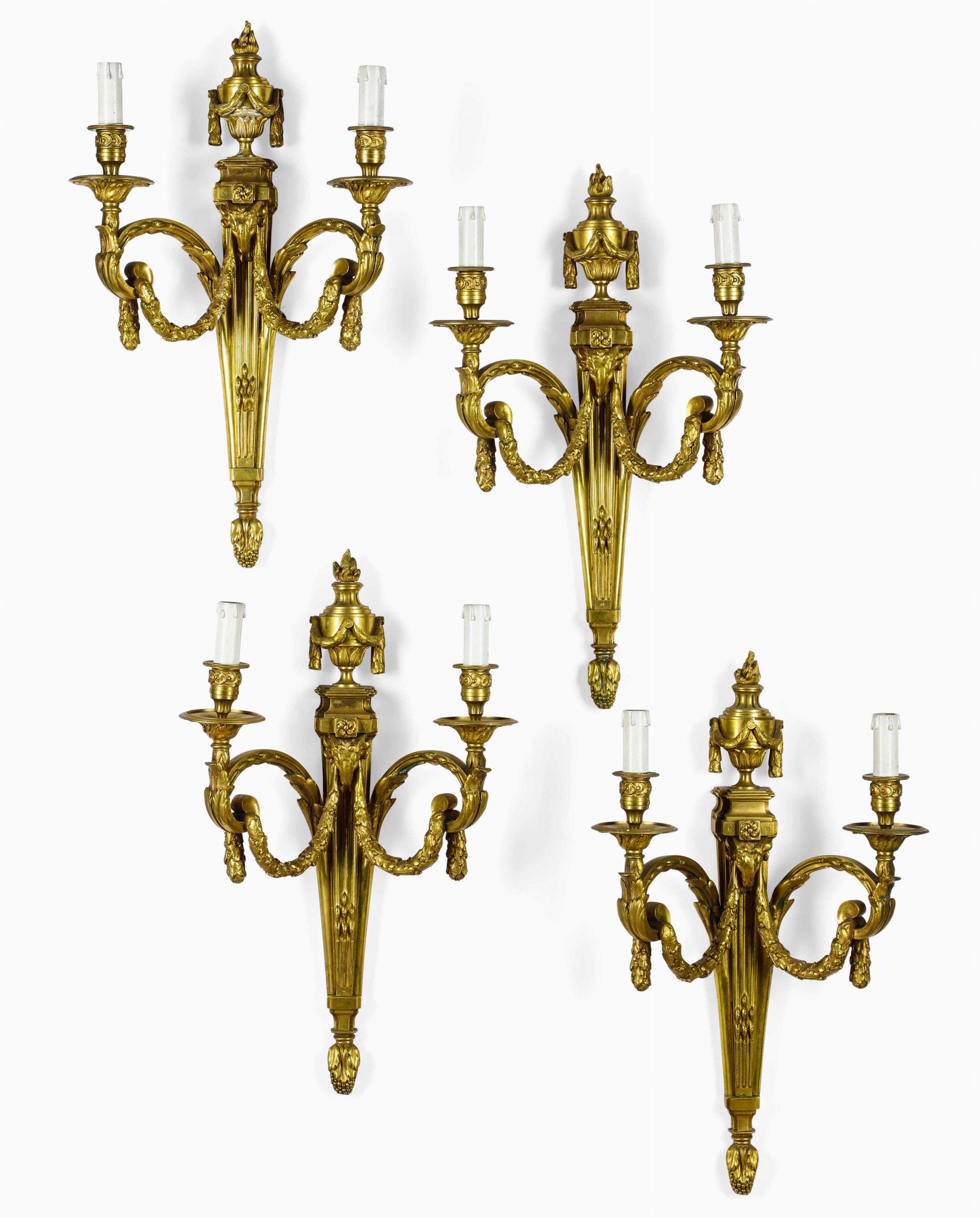 Quattro appliques a due luci in bronzo dorato. XIX-XX secolo