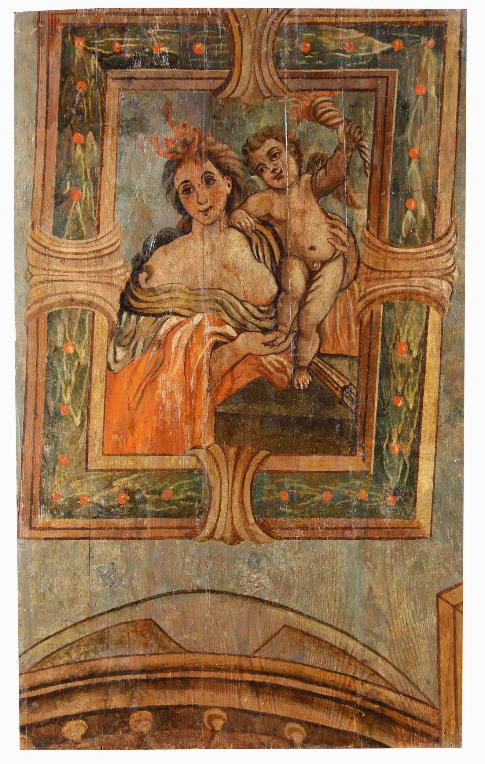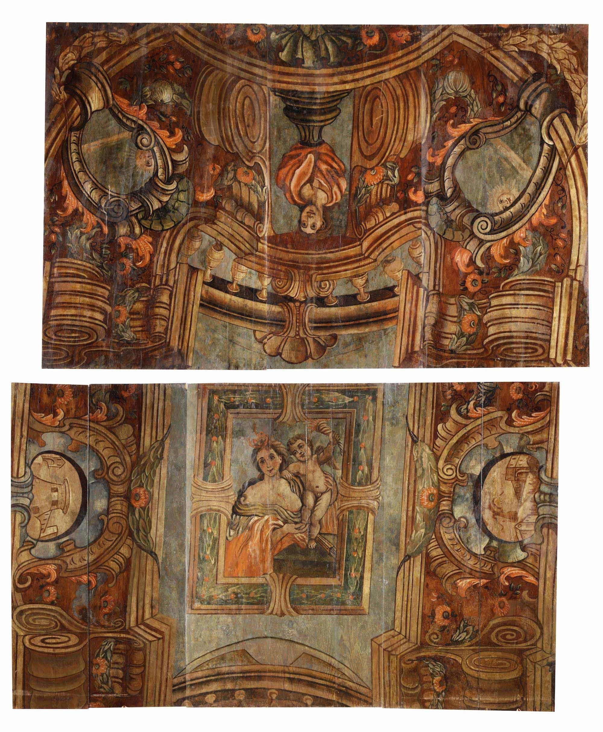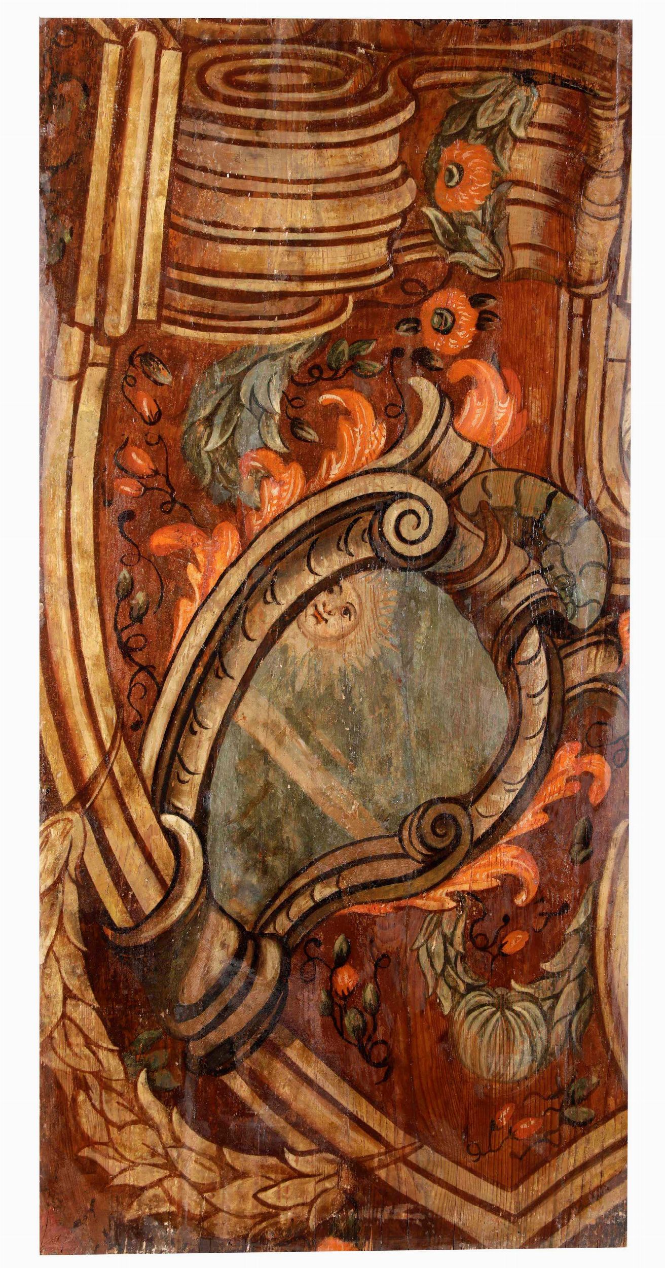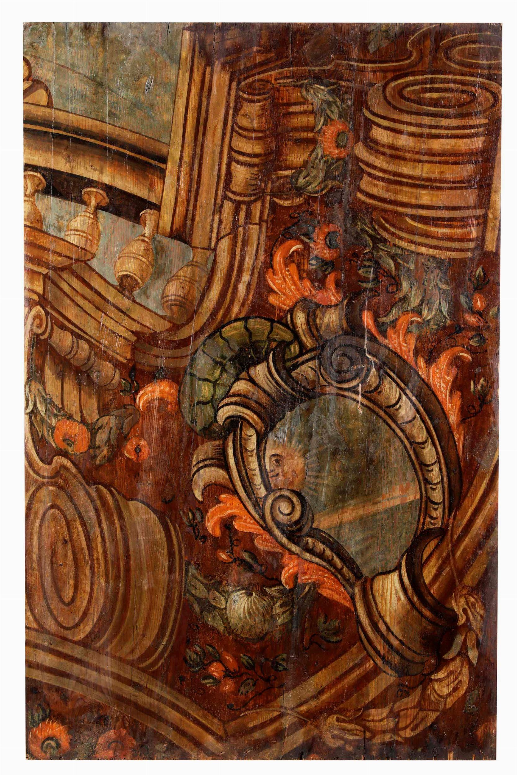 Quinta architettonica e edicola con Madonna con Bambino, boiserie in legno dipinto. [..]