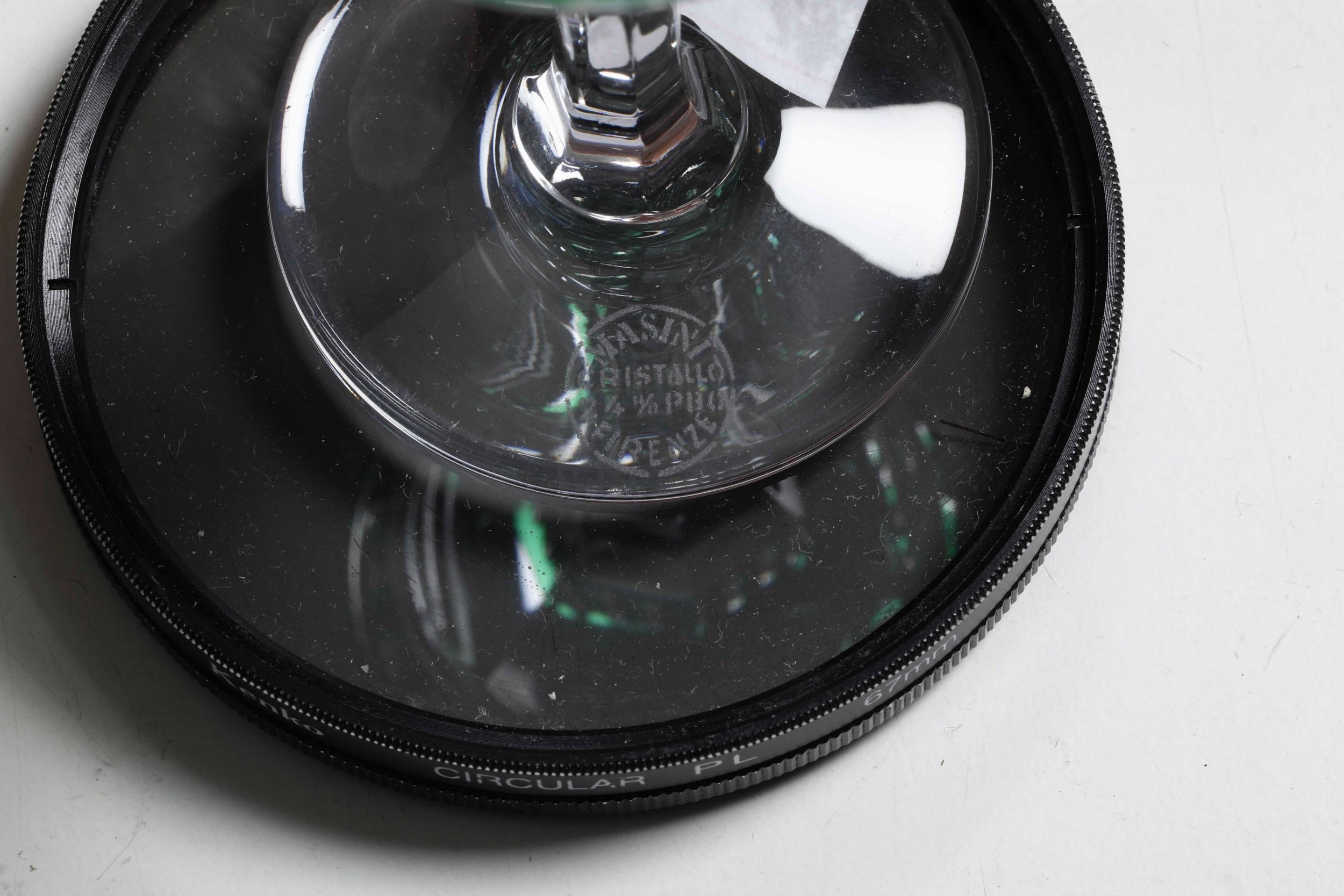 Sei bicchierini da liquore in cristallo con calice di diverso colore, manifattura [..]