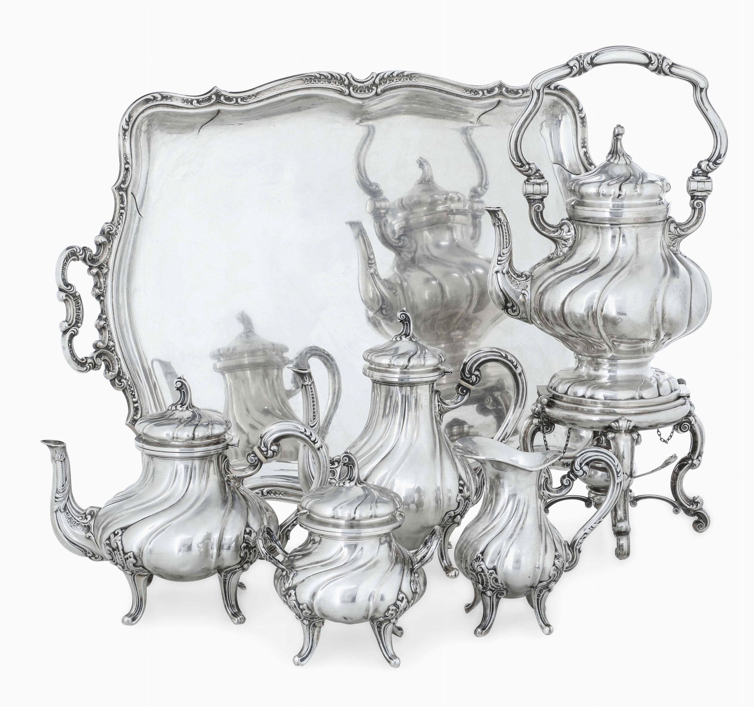 Servizio da tè e caffè con vassoio. Argenteria artistica italiana, inizio XX secolo. [..]