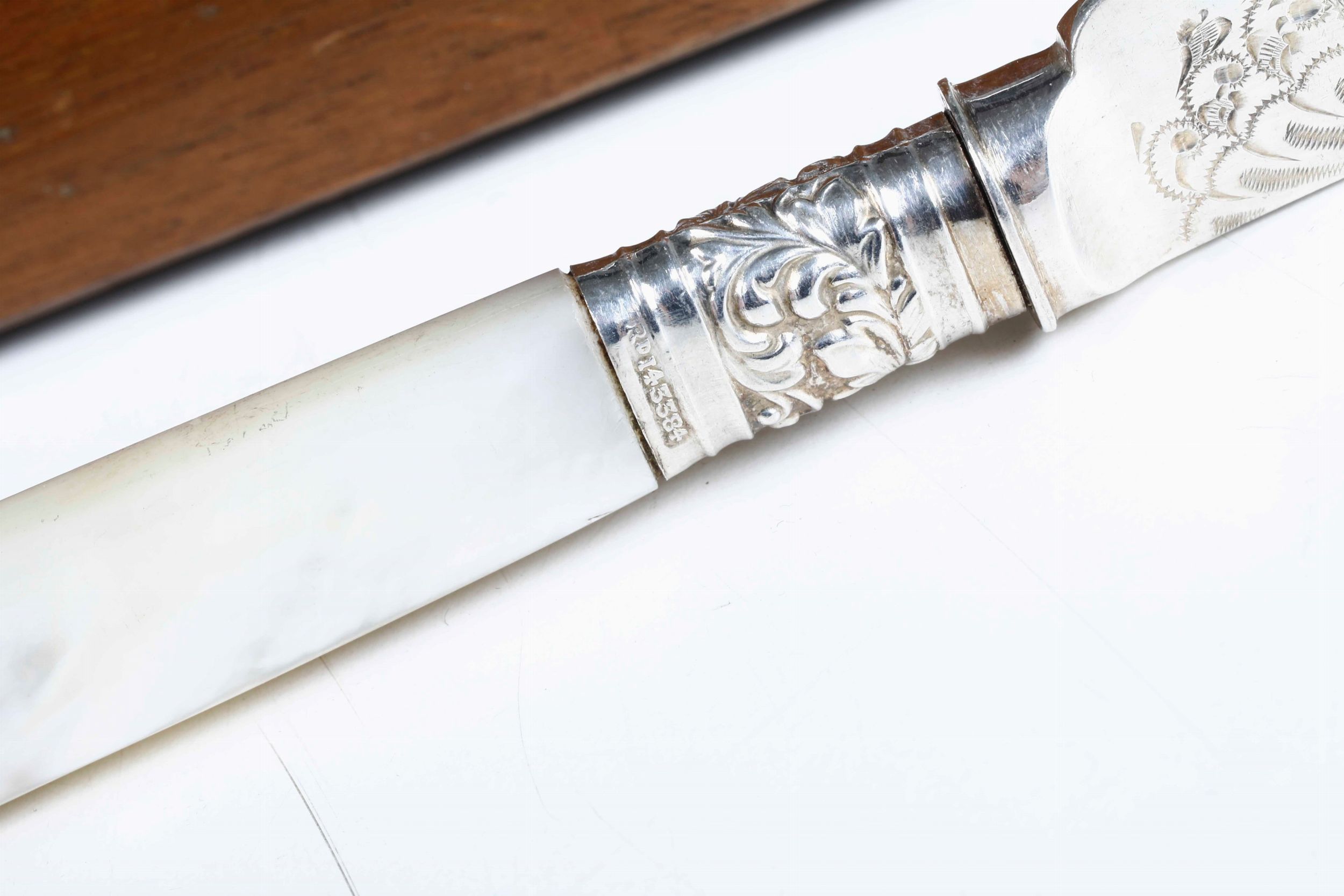 Servizio di posate. Metallo argentato e madreperla. Inghilterra XIX-XX secolo