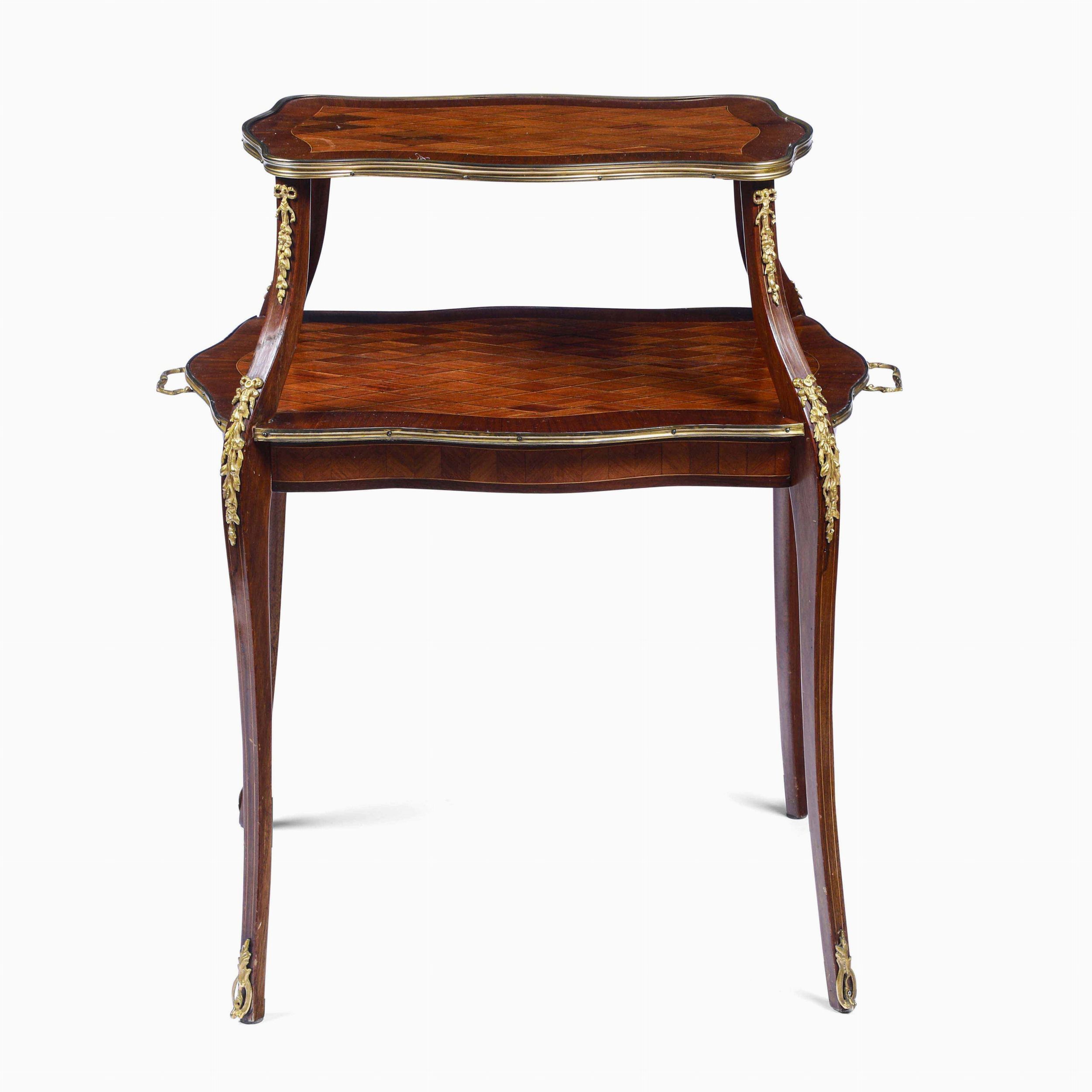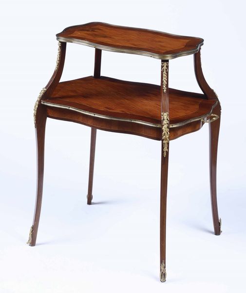 Tavolino a due ripiani lastronato ed intarsiato. XIX secolo