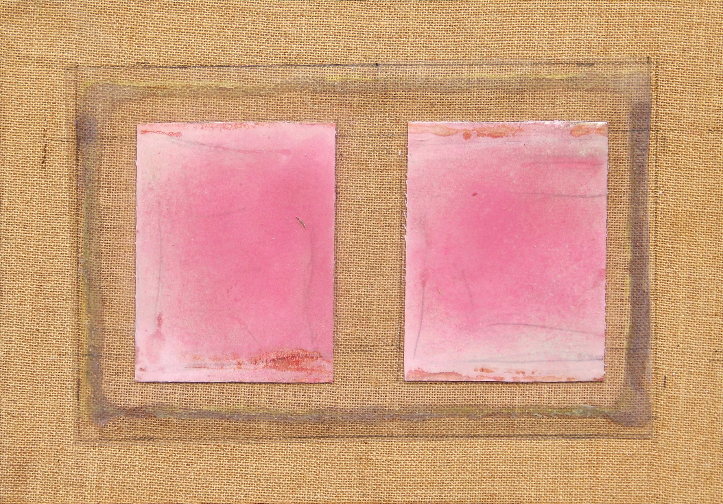 tecnica mista e acetato su tela di juta applicata su tavola, cm 35x50