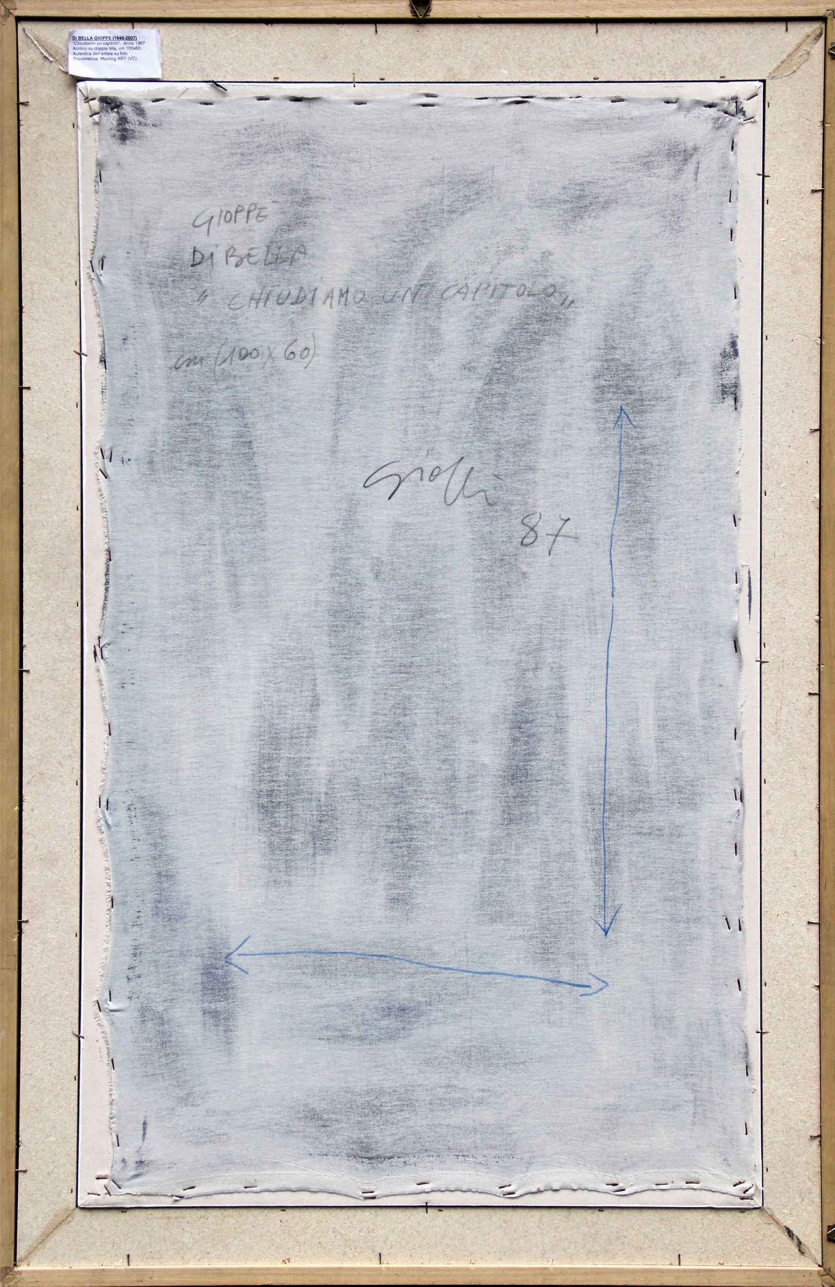 1987 Firma, titolo, misura, firma, data Gioppe Di Bella, Chiudiamo un capitolo, cm 100x60, Gioppe, 87 (al retro)