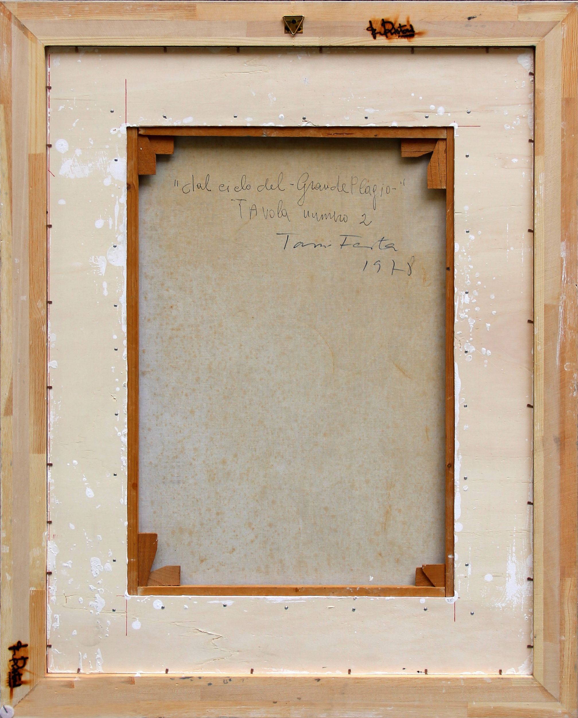 1978 Titolo, descrizione, firma, data dal cielo del -Grande Plagio-, Tavola numero 2, Tano Festa, 1978 (al retro)