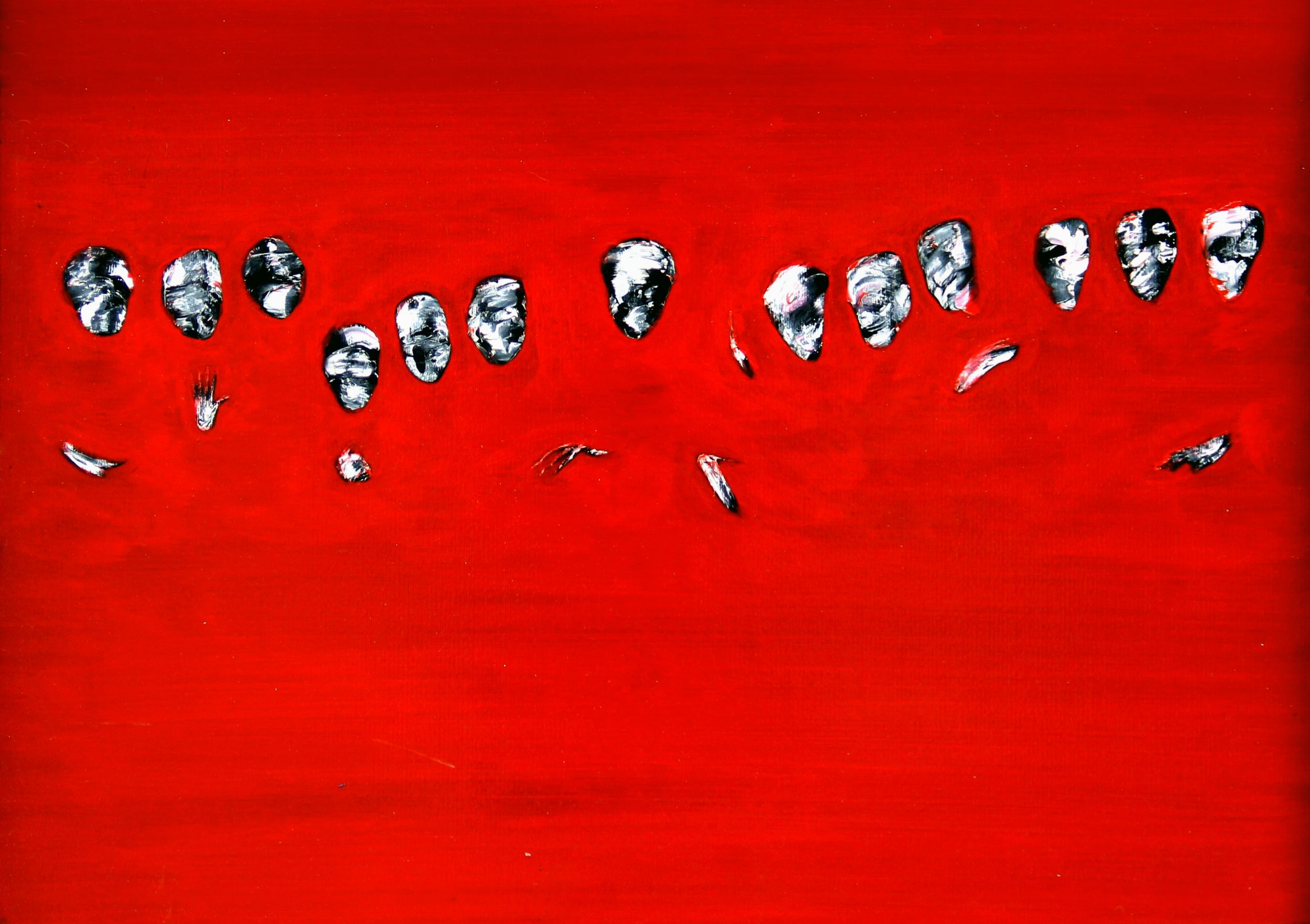2021 Titolo, data, firma Il grande sacrificio (red), 2021, Puglisi (al retro)