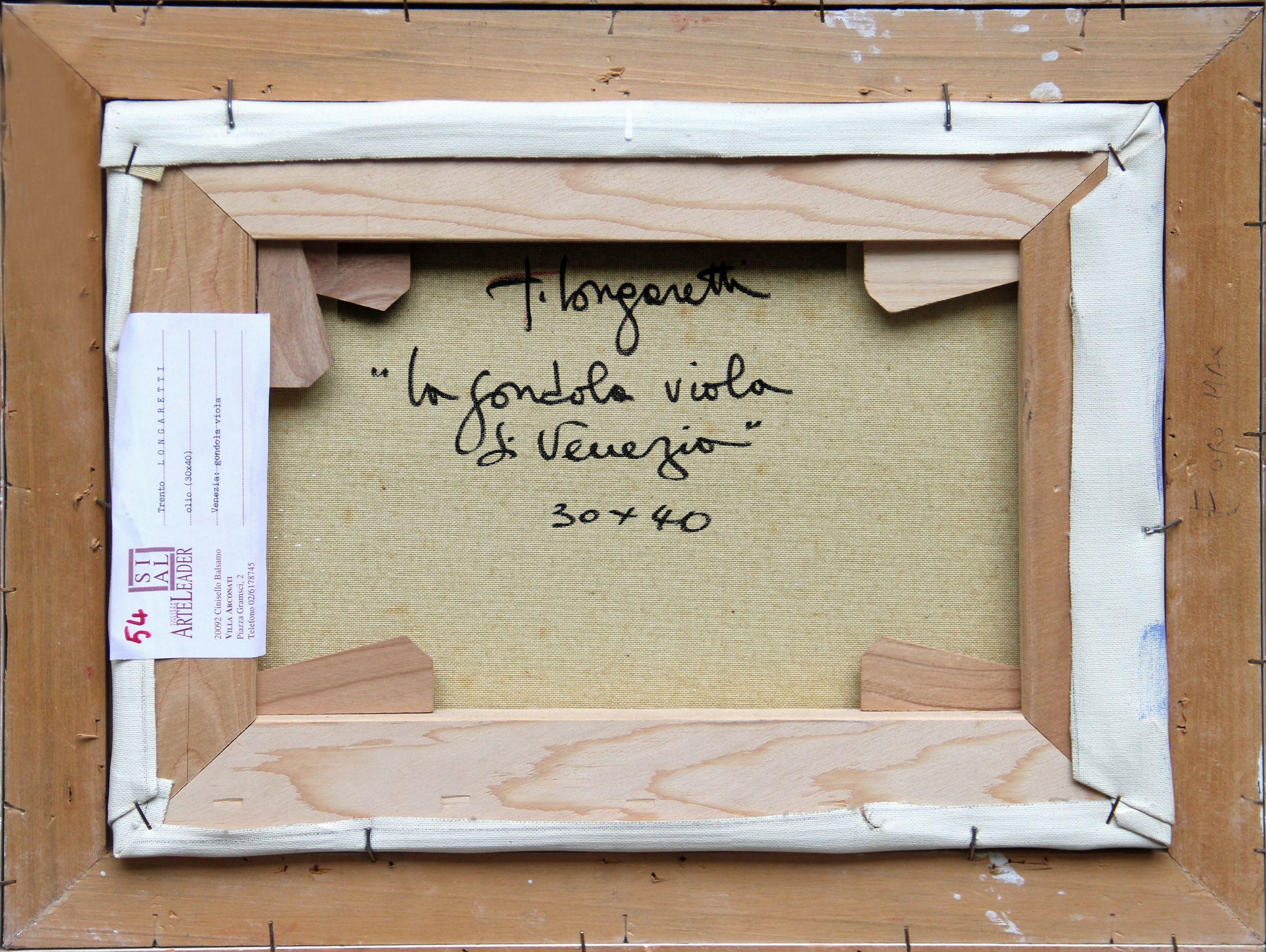 Firma, titolo, misura T. Longaretti, La gondola viola di Venezia, 30x40;