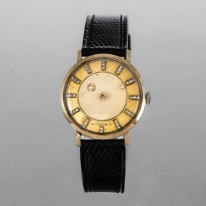 gr 66 Longines in oro giallo 18k, quadrante nero indici con brillanti ai punti cardinali, movimento automatico, [..]