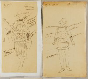 Scuola italiana del XIX secolo Studi per i costumi di due personaggi del Trovatore [..]