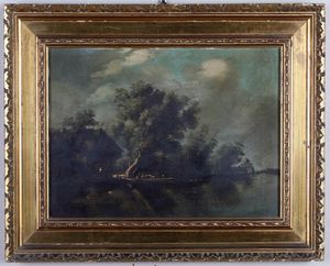 Scuola del XVIII secolo Paesaggio con contadini e viandanti