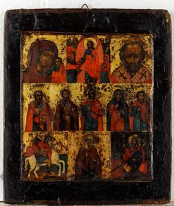 Icona raffigurante Madonna con Bambino, Cristo e Santi, Russia, XIX secolo
