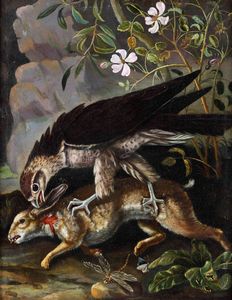 Scuola del XVIII secolo Falcone che caccia una lepre
