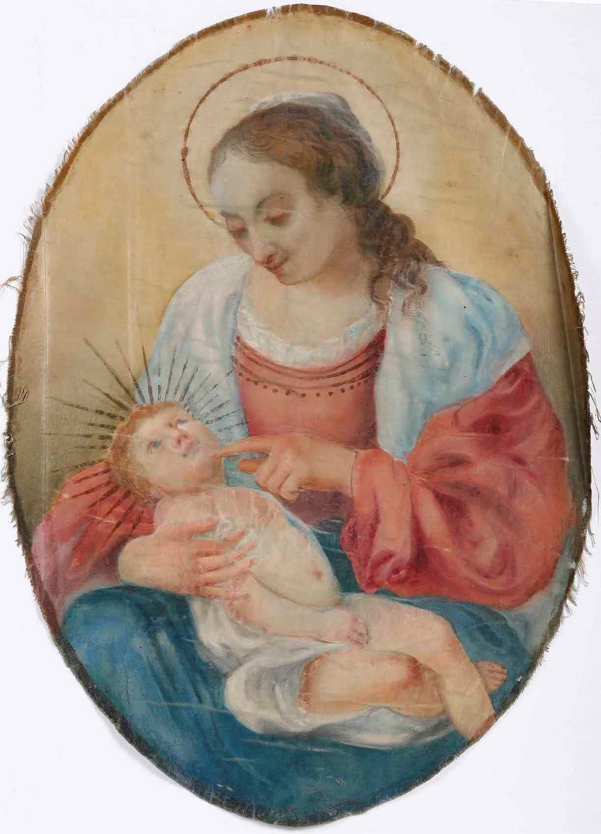 dipinto su seta ovale, Largh. 34,5 - Alt. 48 cm