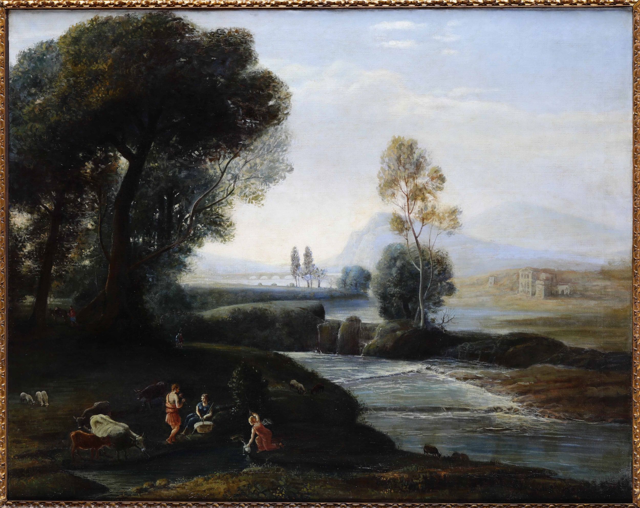 Scuola del XIX secolo Paesaggio fluviale con pastori e armenti