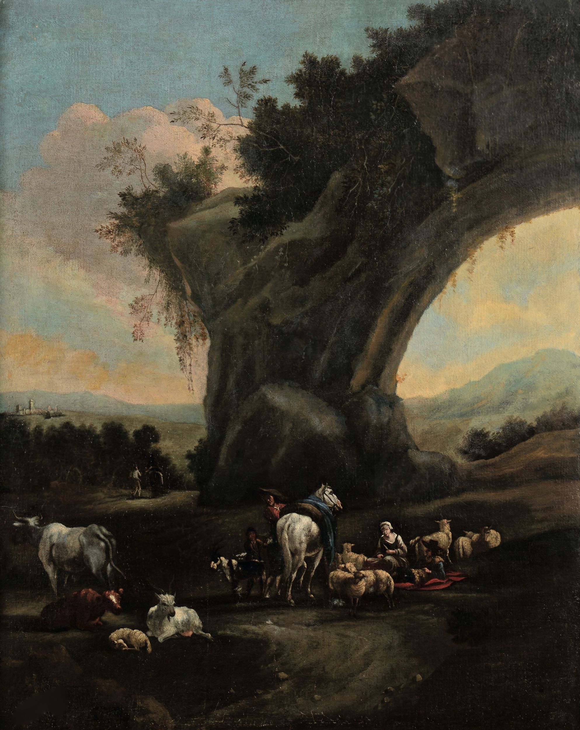 Scuola fiamminga del XVII secolo Paesaggi con pastori e armenti