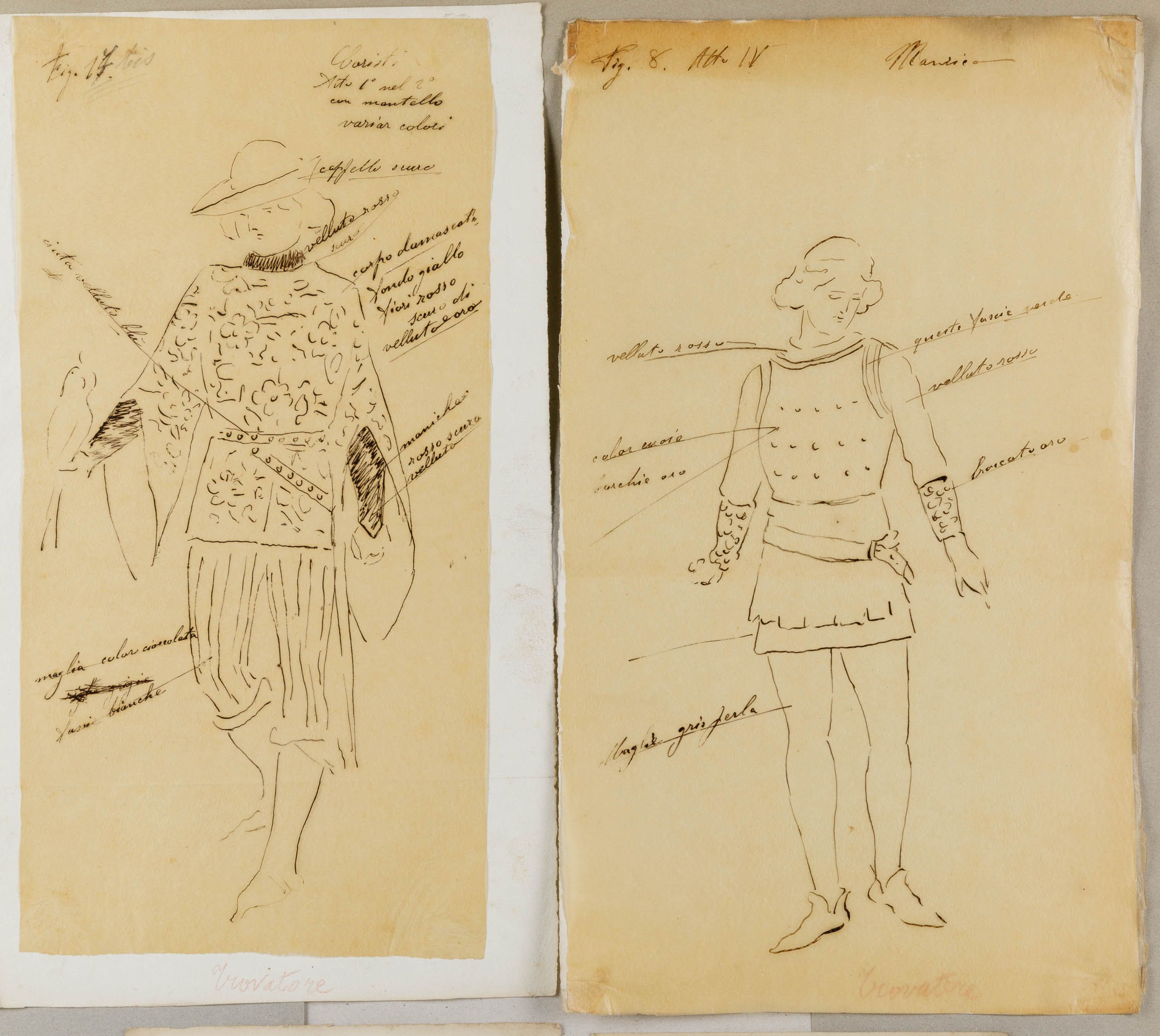 Scuola italiana del XIX secolo Studi per i costumi di due personaggi del Trovatore [..]