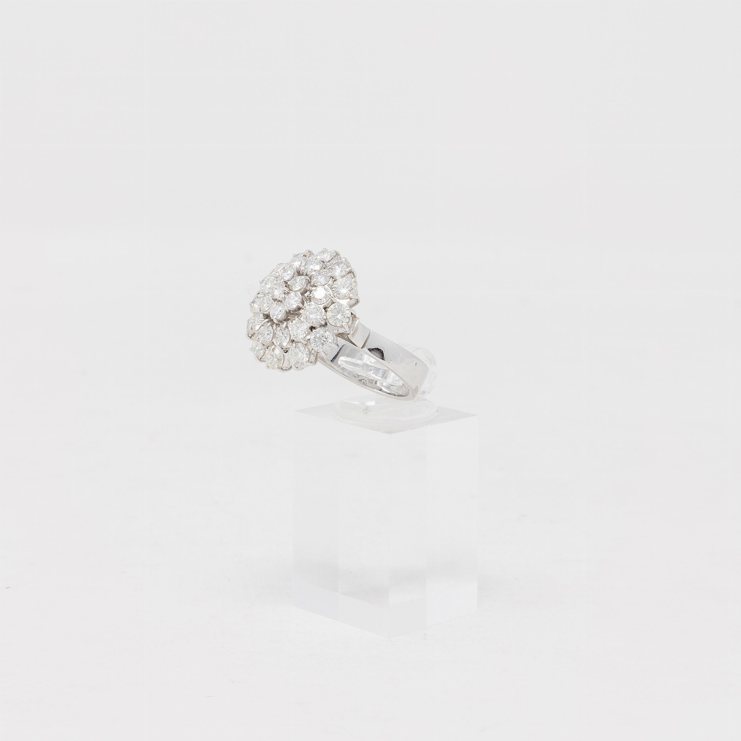 Anello a corolla in oro bianco e diamanti