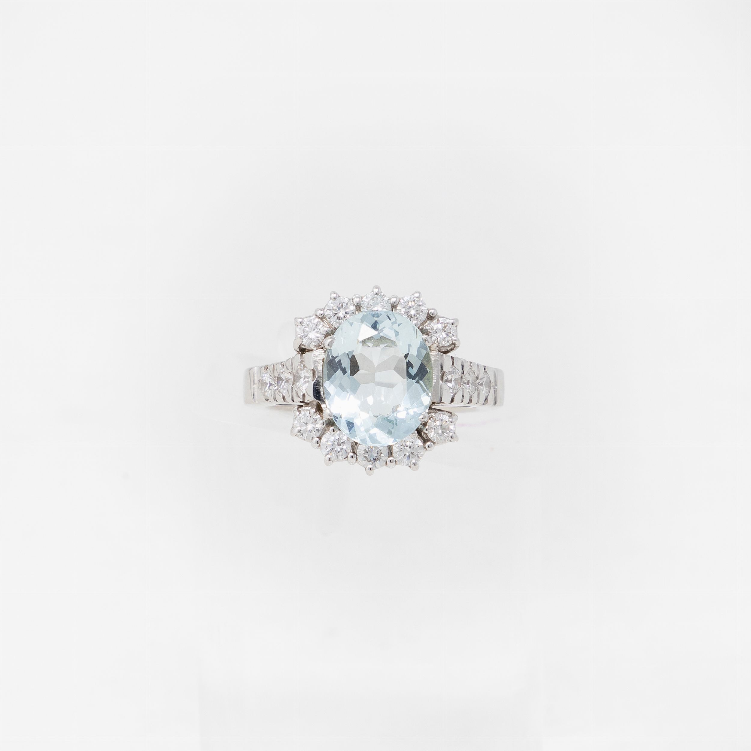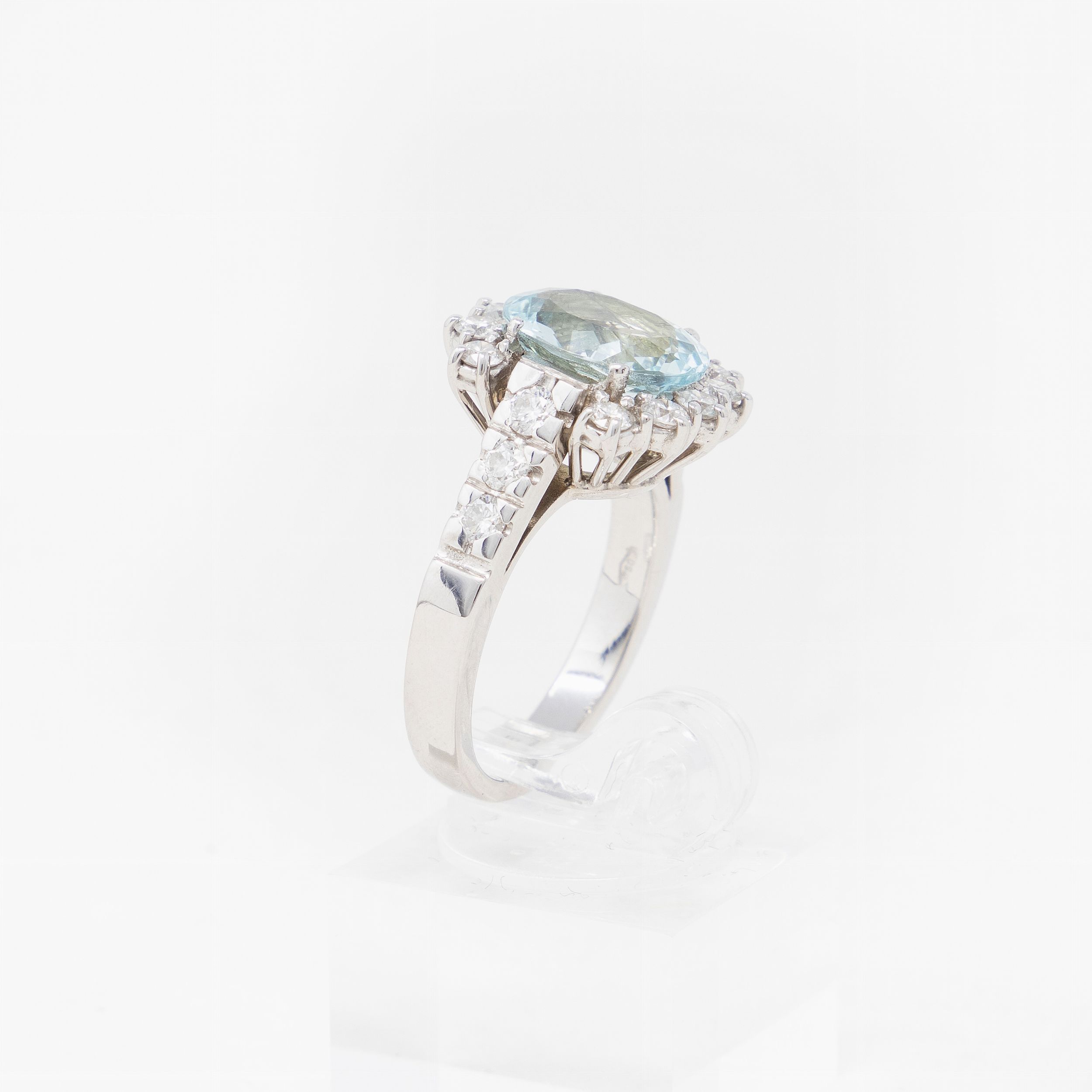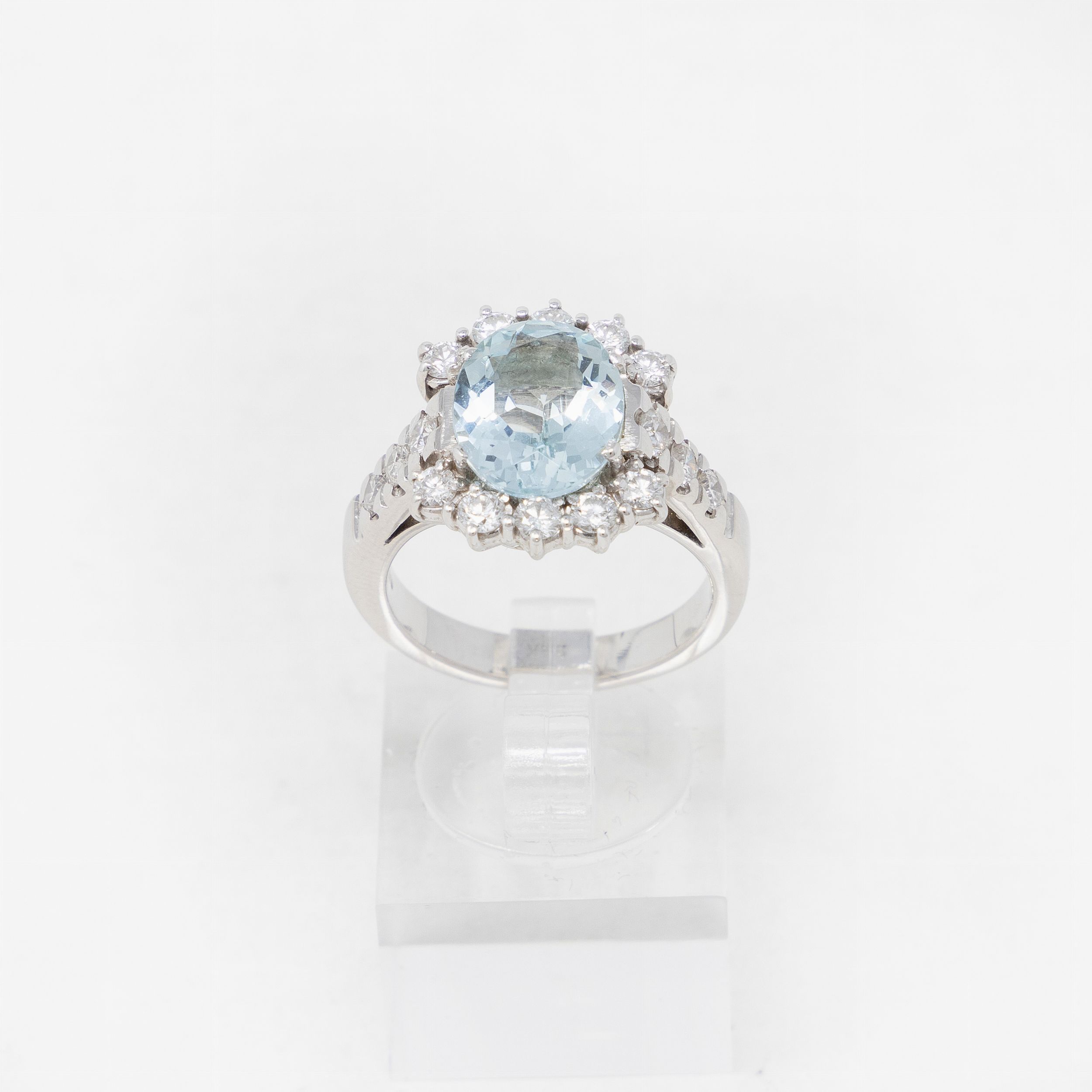 oro 18 kt, acquamarina kt 2,90, diamanti kt 0,80, misura 16, g 9,5.
