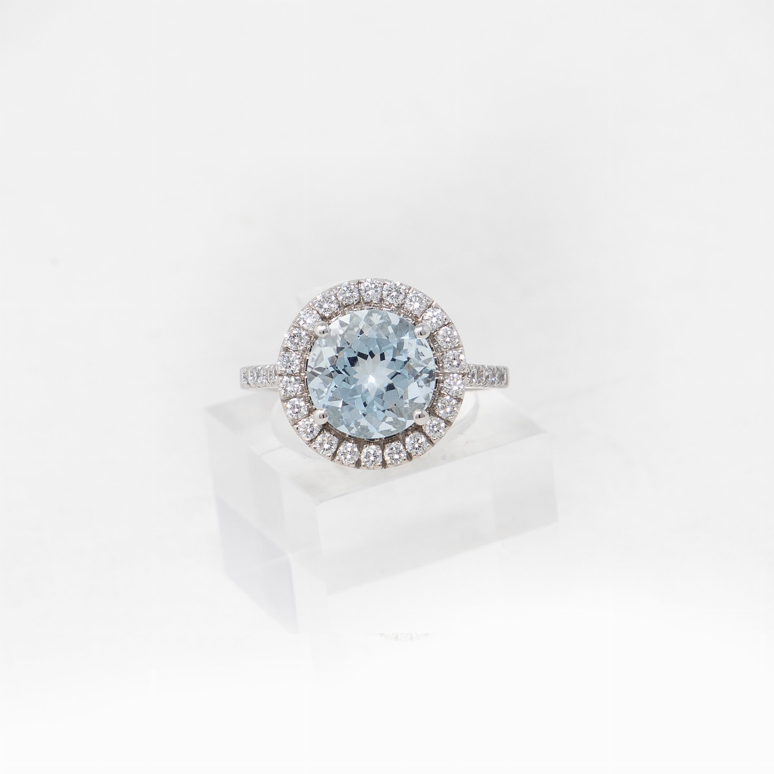 Anello in oro bianco con acquamarina e diamanti