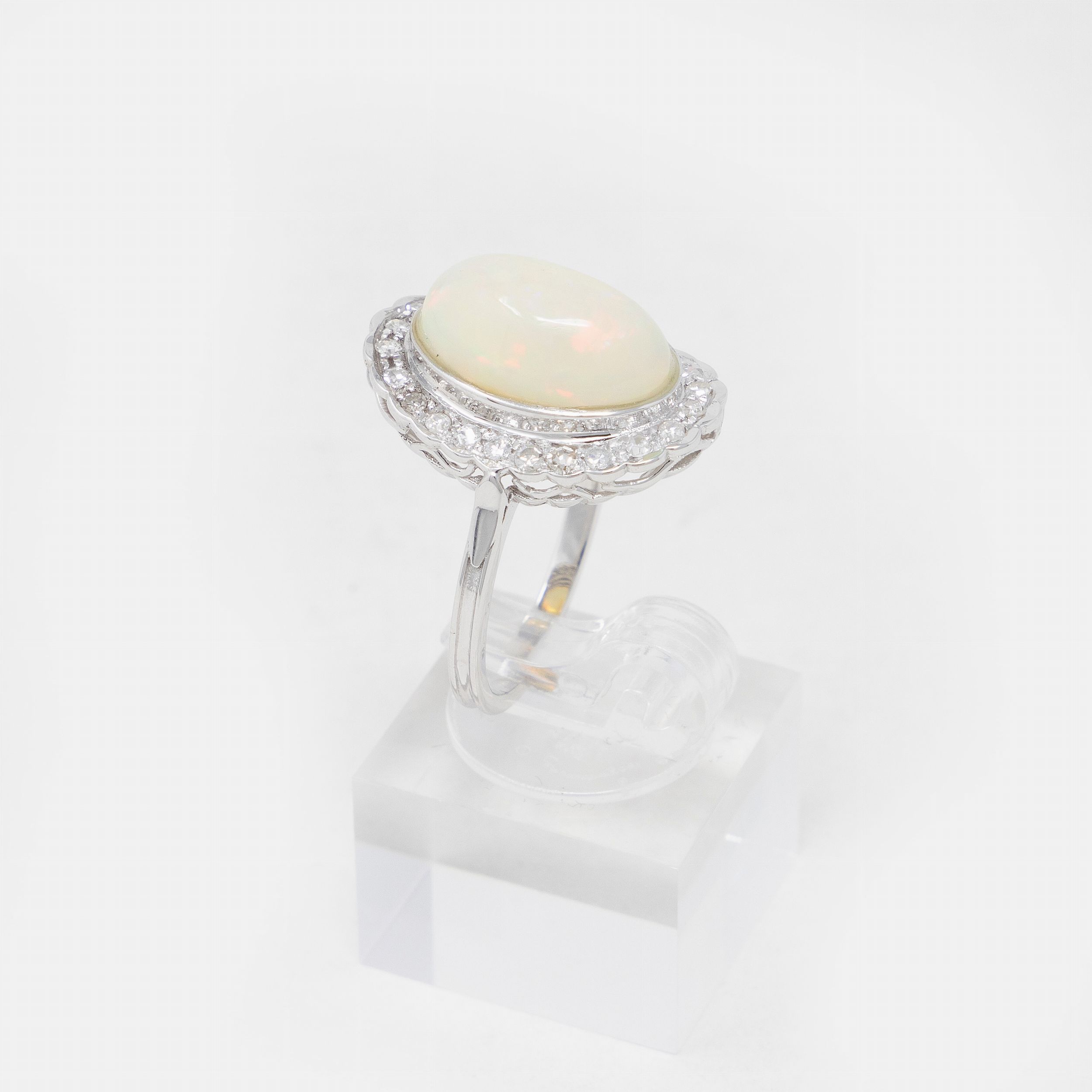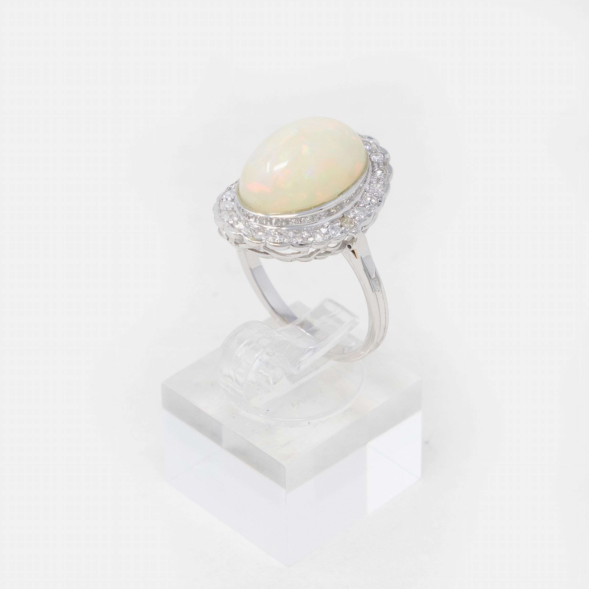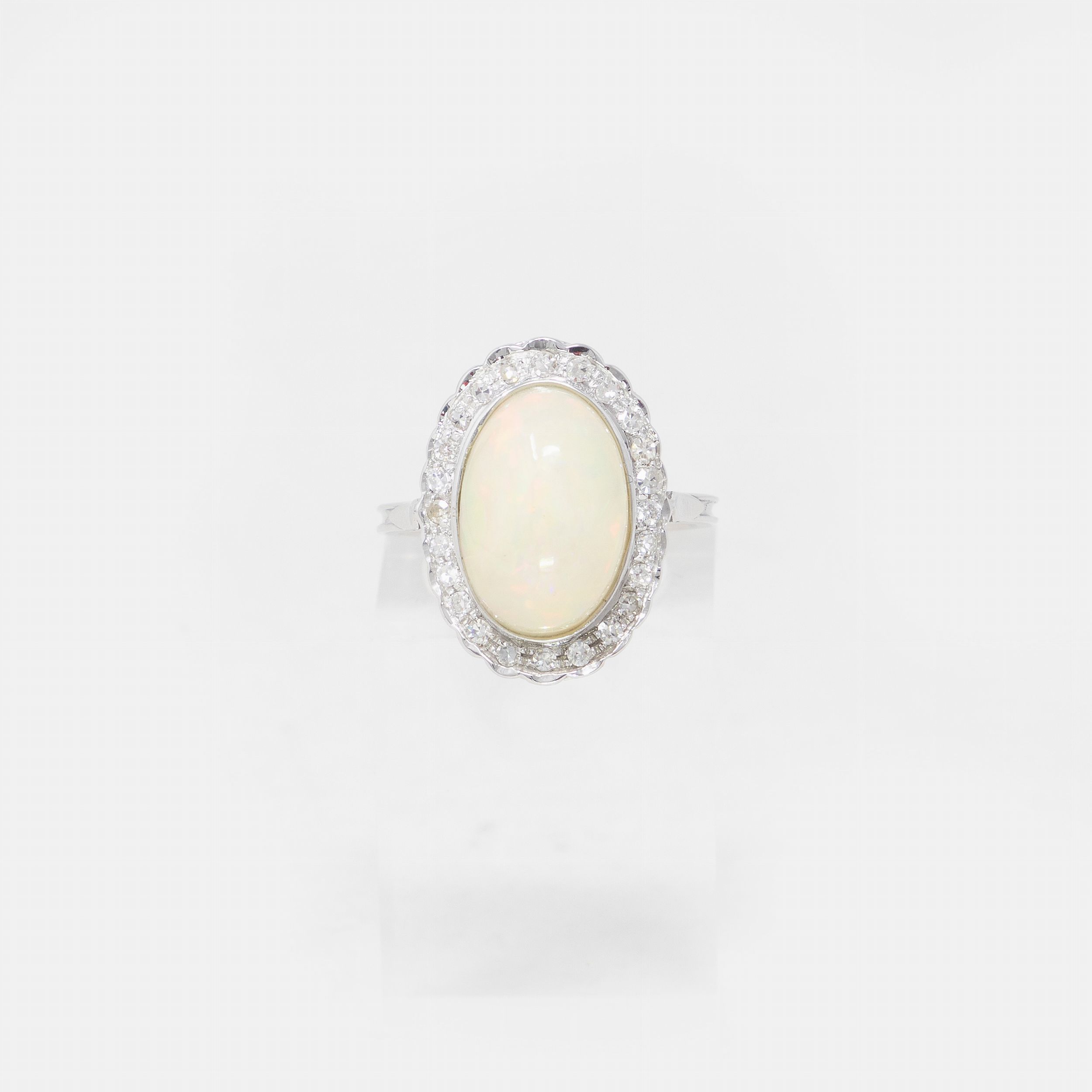 oro 18 kt, opale kt 8,50, brillanti kt 0,40 ca., misura 18, g 4,9.