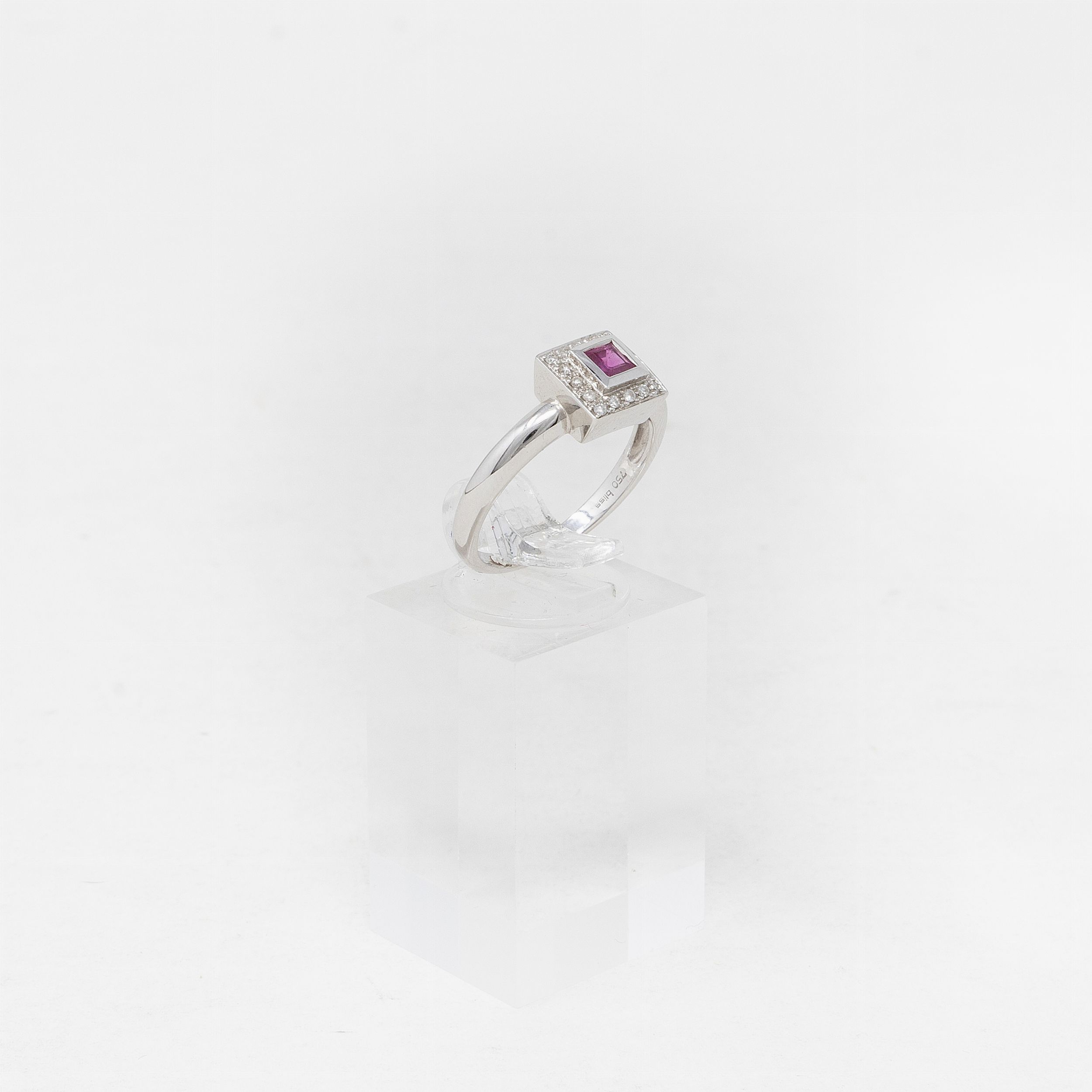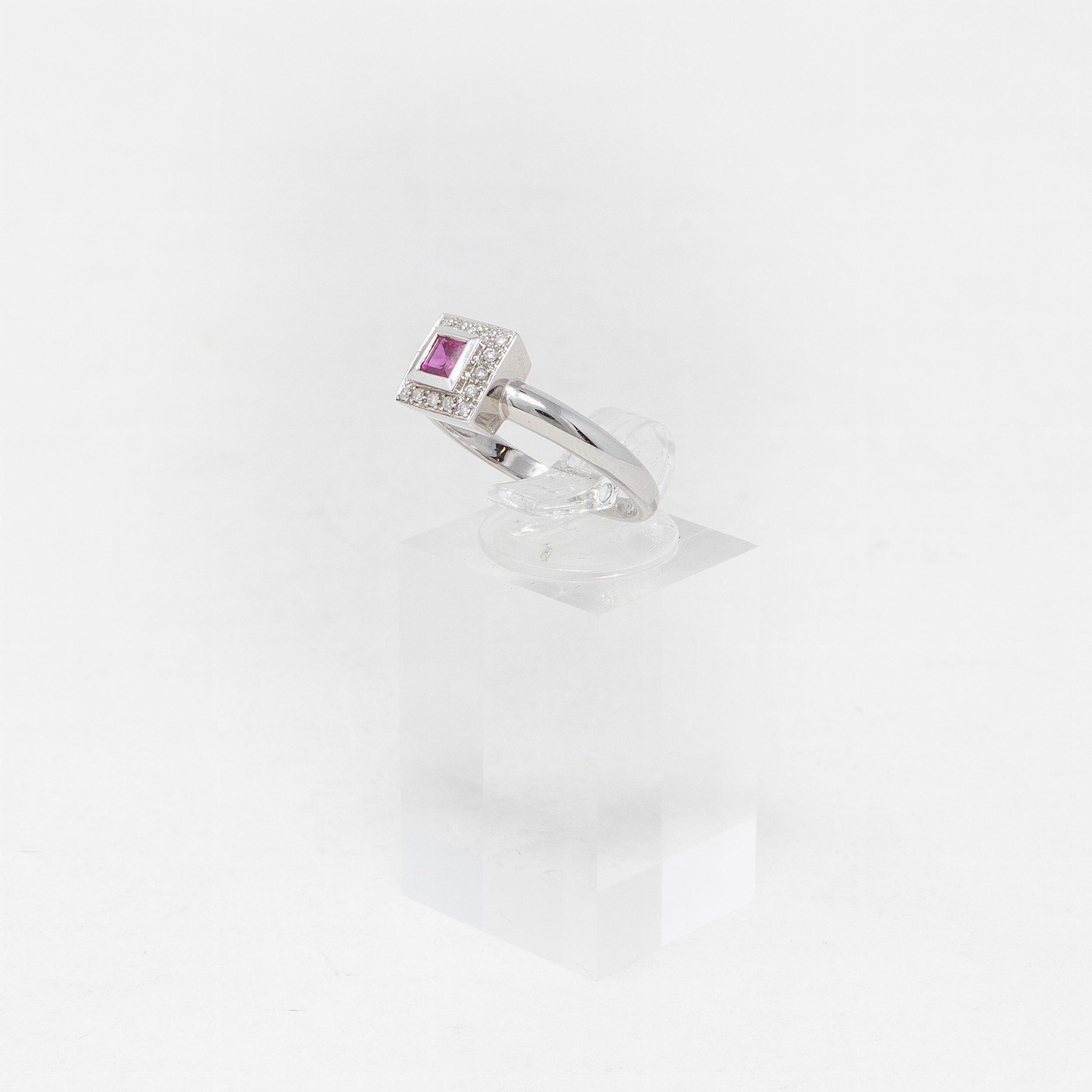 Anello in oro bianco con rubino e brillanti