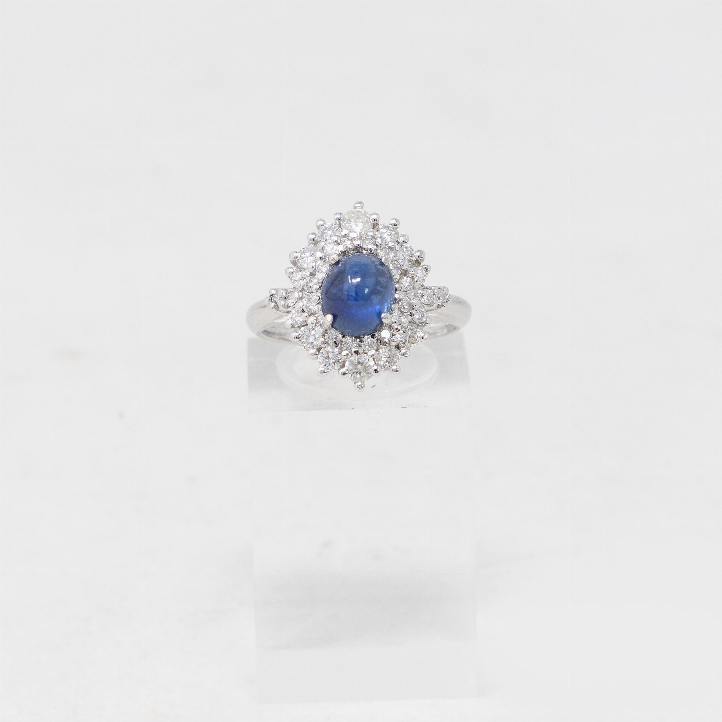 oro 18 kt, zaffiro kt 3,00 ca., diamanti kt 0,95, misura 17, g 6.