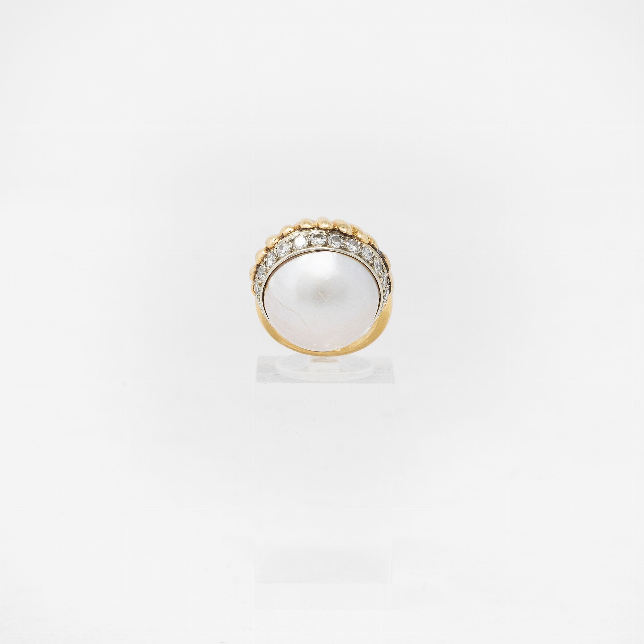 oro 18 kt, perla mm 17 ø ca., brillanti kt 1,10 ca., misura 13, g 19,5.