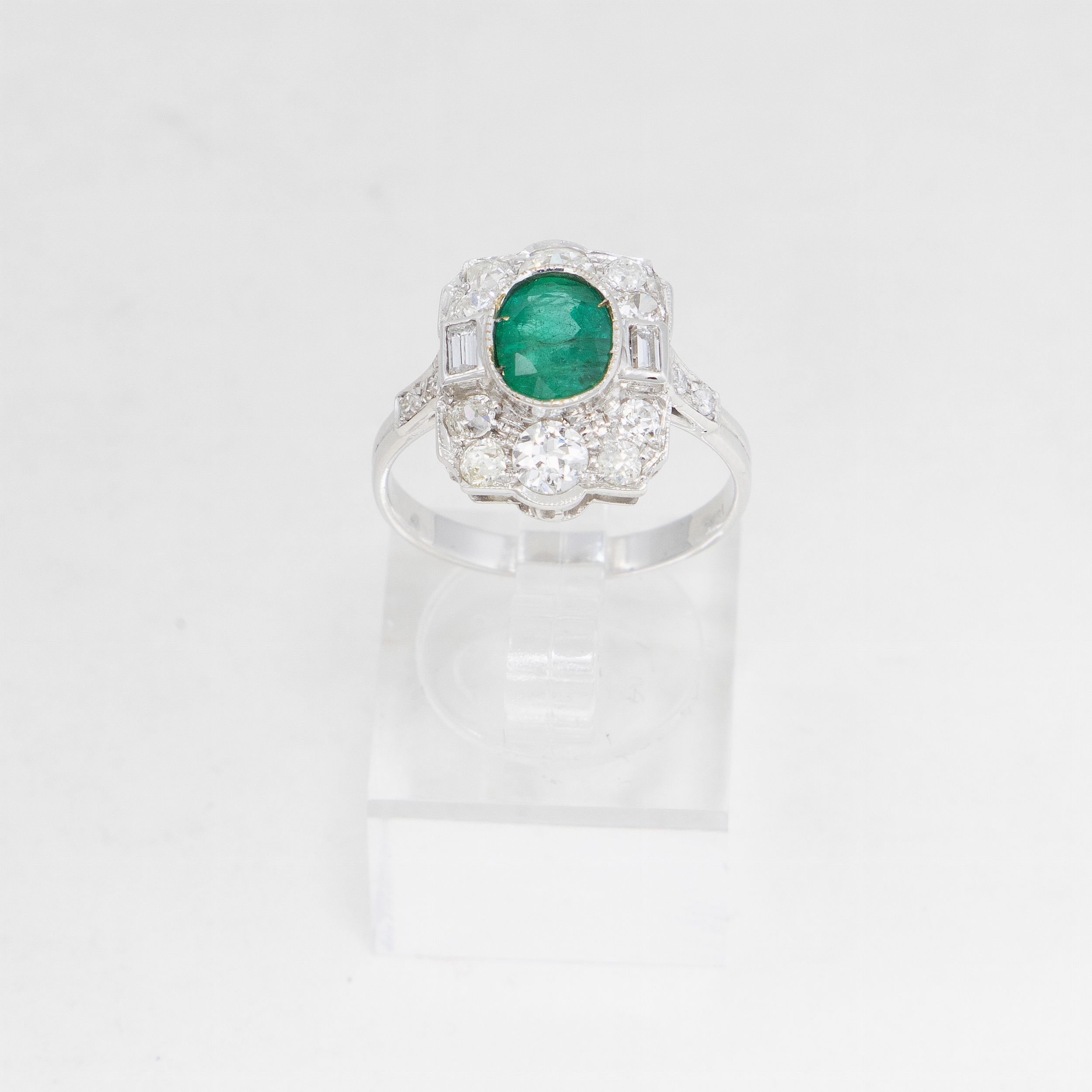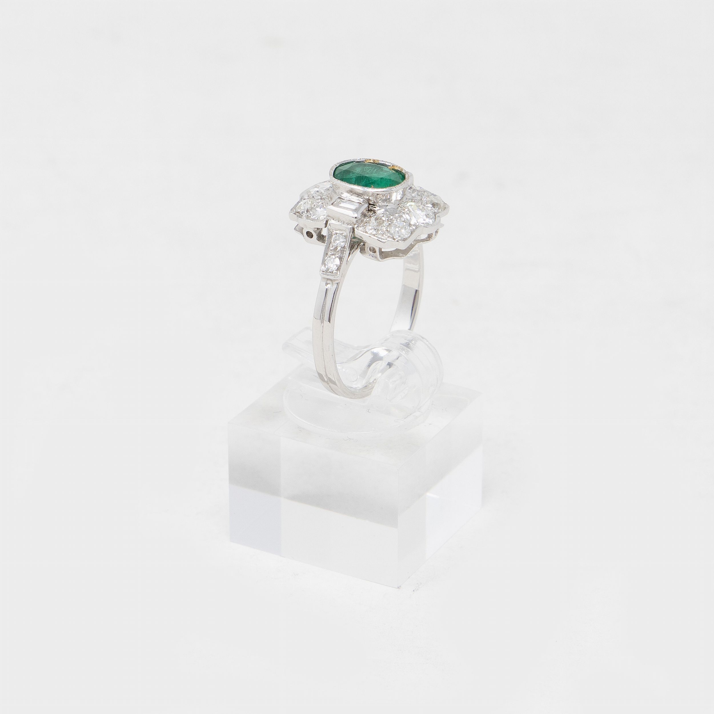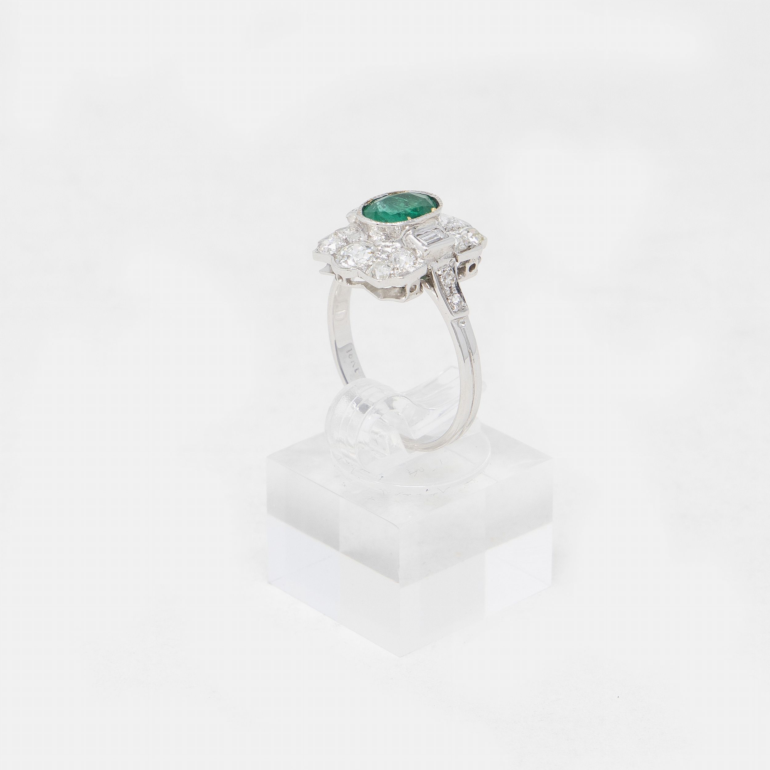 oro 18 kt, smeraldo kt 2,00, diamanti kt 1,20 ca., misura 19, g 4,2.