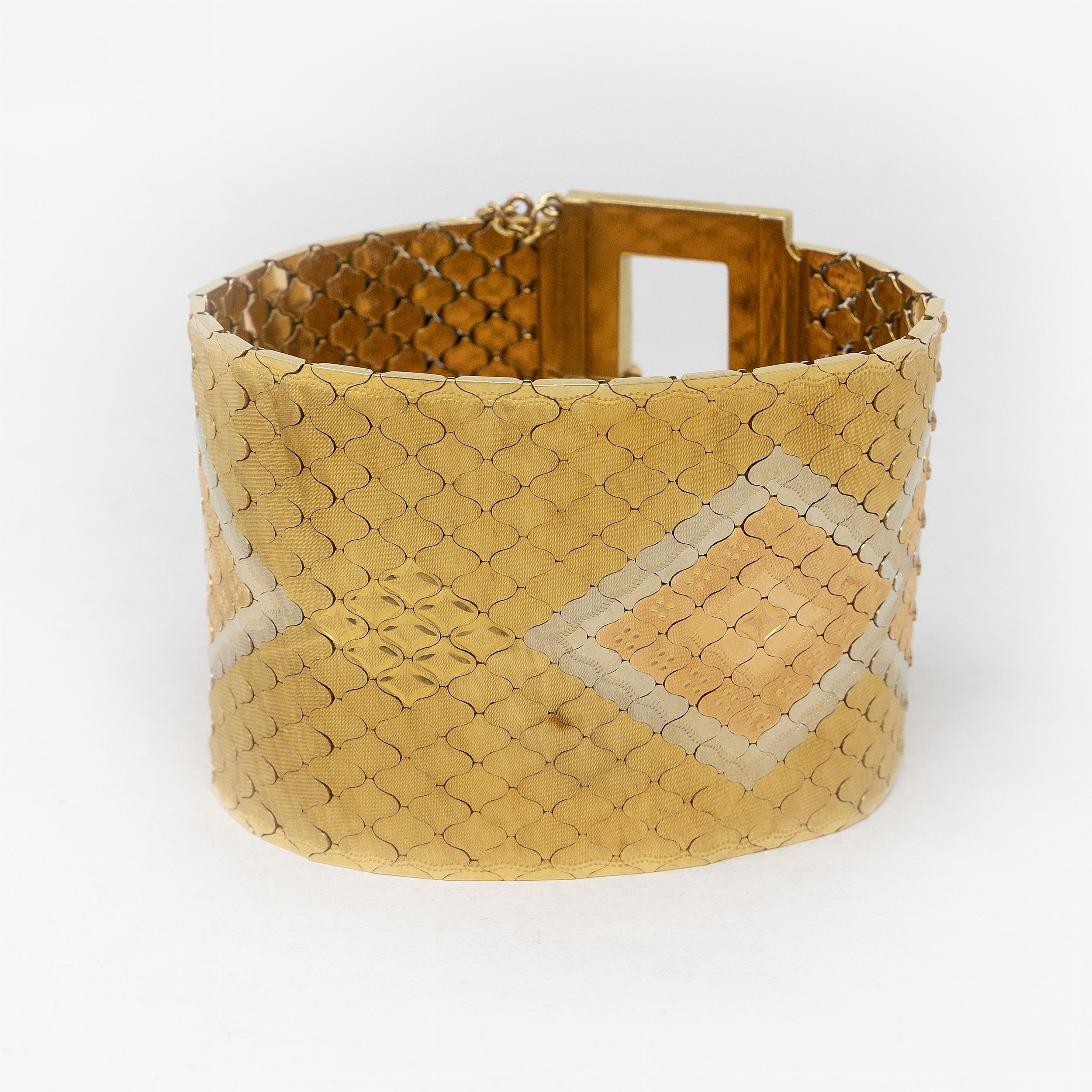 Bracciale a fascia flessibile a nido d'ape in oro giallo satinato