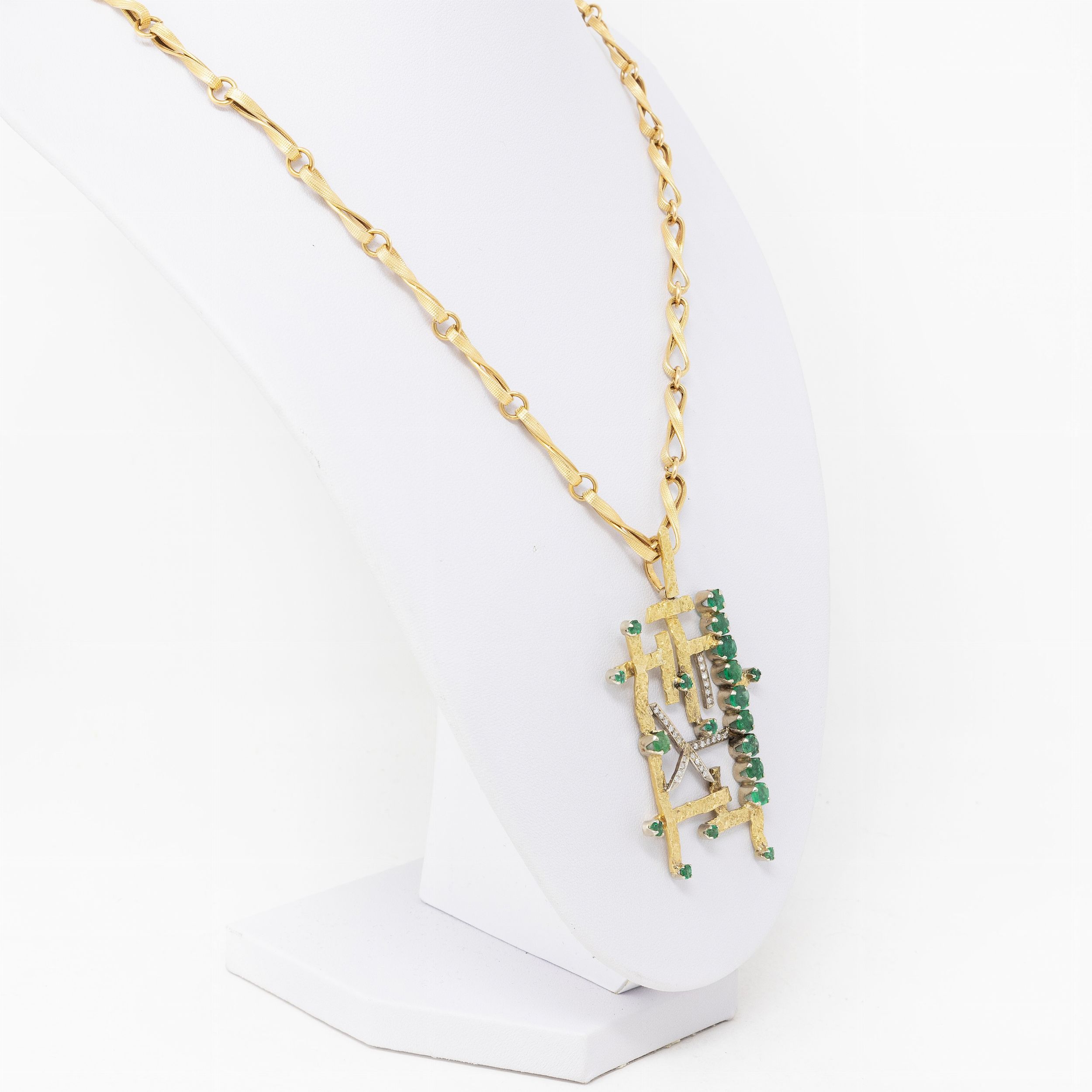 Collana a maglie con pendente in oro giallo con smeraldi e piccoli brillanti