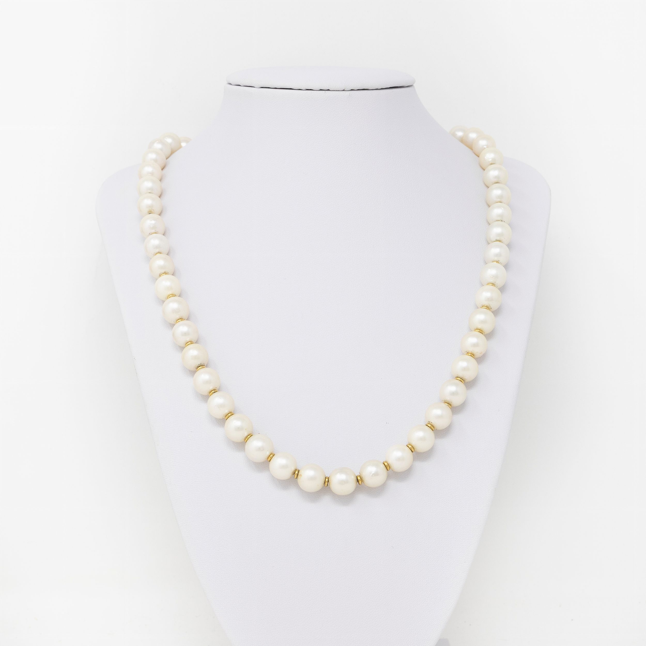 oro 18 kt, lunghezza cm 53, perle mm 9 ø.