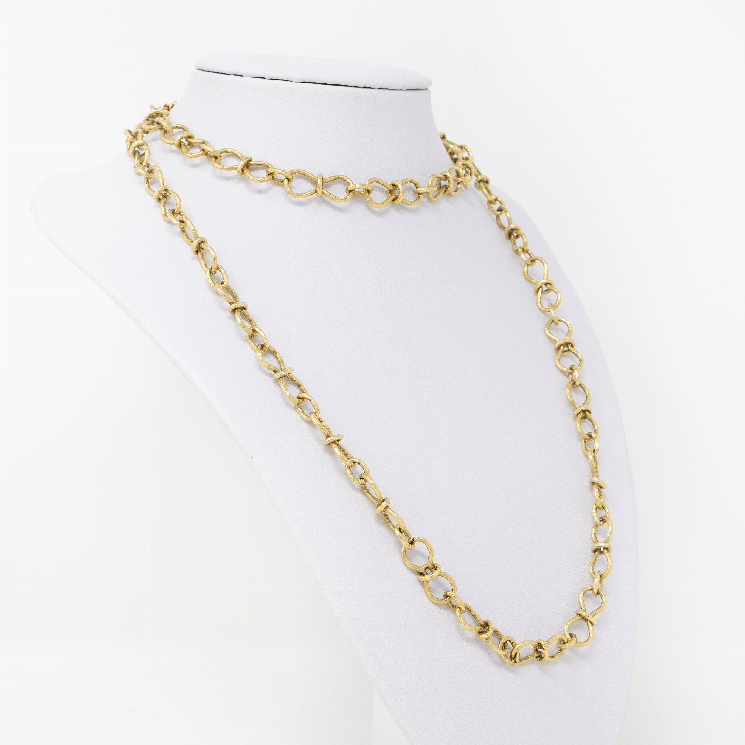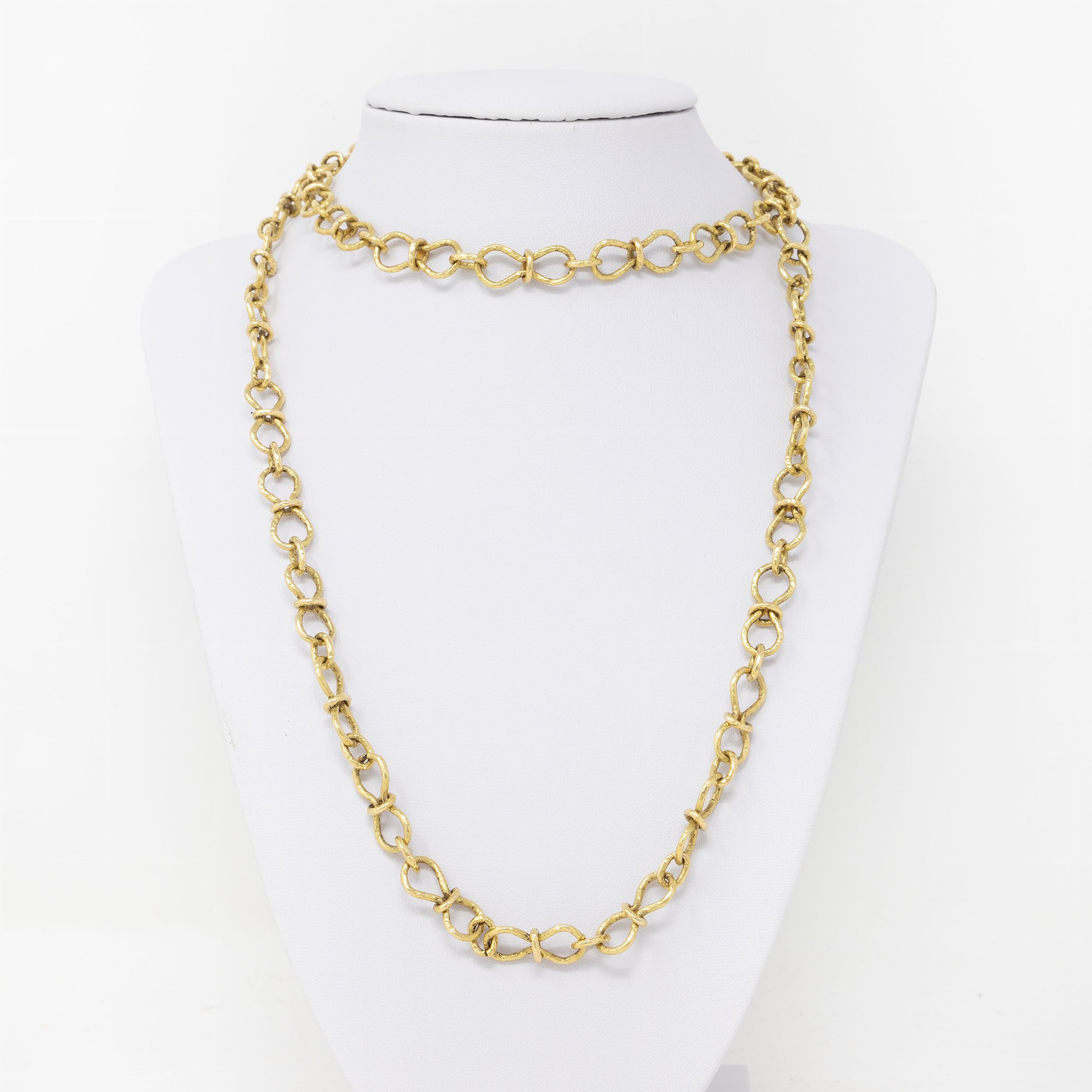 Favilli, lunga collana in oro giallo martellato