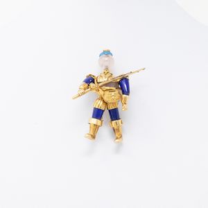 Spilla Pescatore in oro giallo, lapislazzuli e quarzo rosa