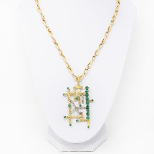 Collana a maglie con pendente in oro giallo con smeraldi e piccoli brillanti